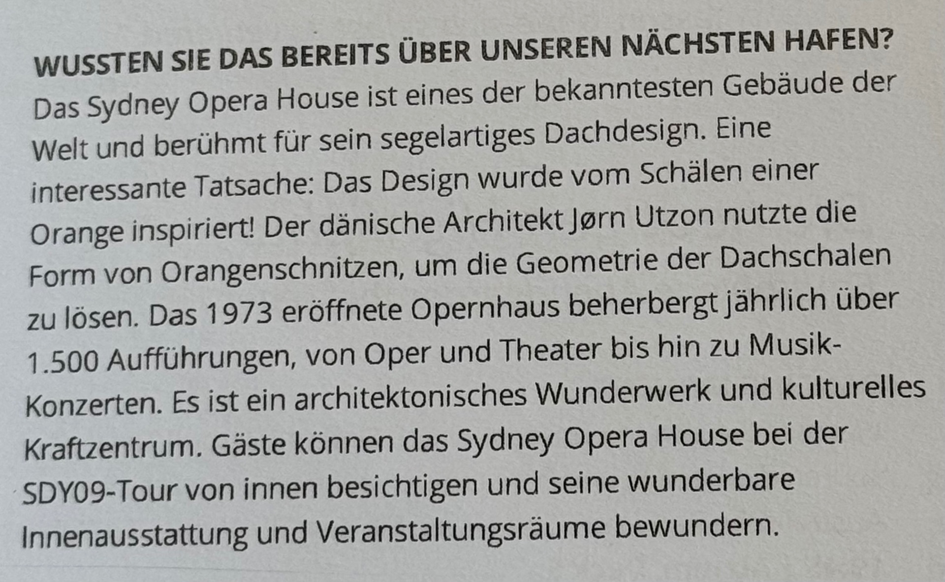 Diese Information zum Opera House stand in unserer „Daily“.
