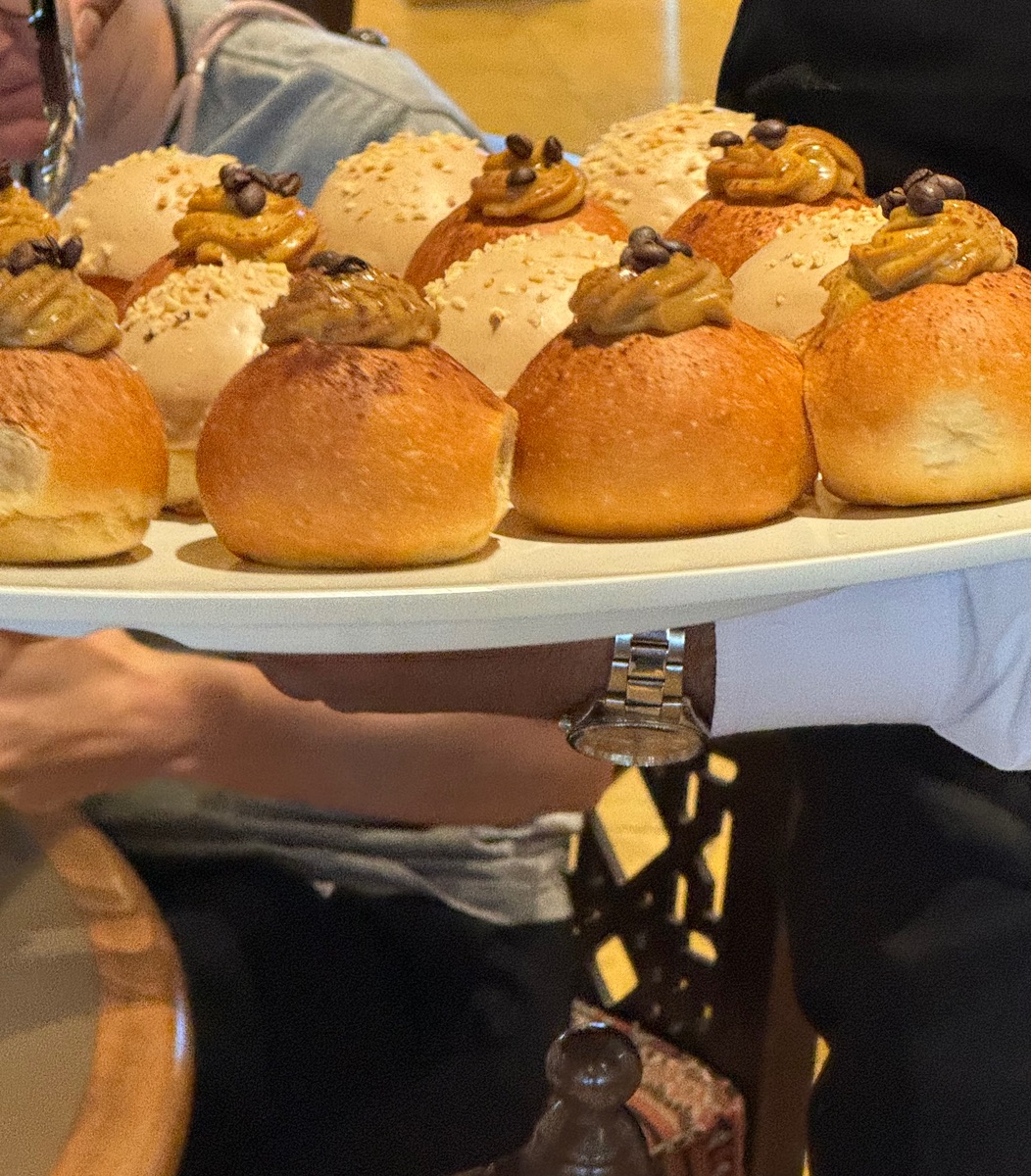 Die Überraschung des heutigen Frühstücksbuffets waren: „süße Gebäckstücke“, minimal gefüllt mit Moccacreme oder mit weißer Schokolade überzogen.