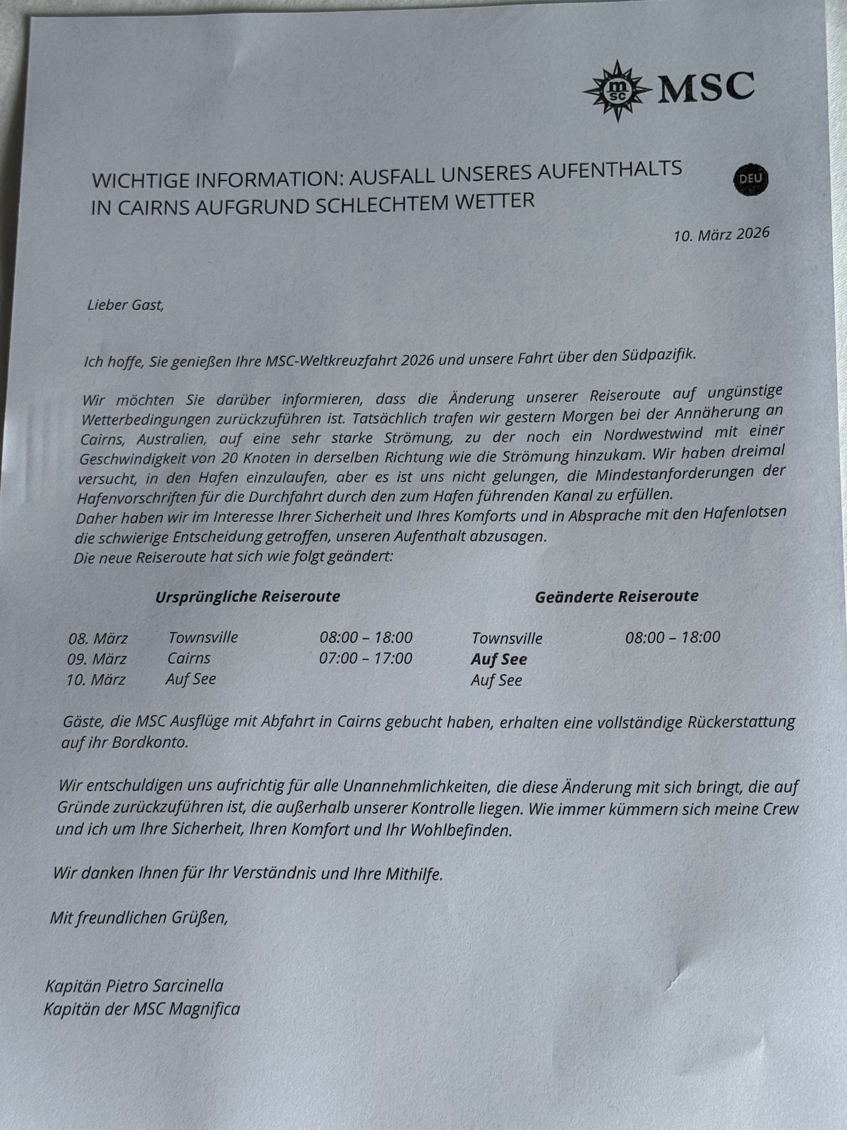 Da unser Liegeplatz Cairns ausgefallen ist (dazu stelle ich diesen Kabinenbrief ein, den wir gestern erhielten), möchte ich euch heute noch ein wenig über das Museum of Tropics Queensland in Townsville berichten.