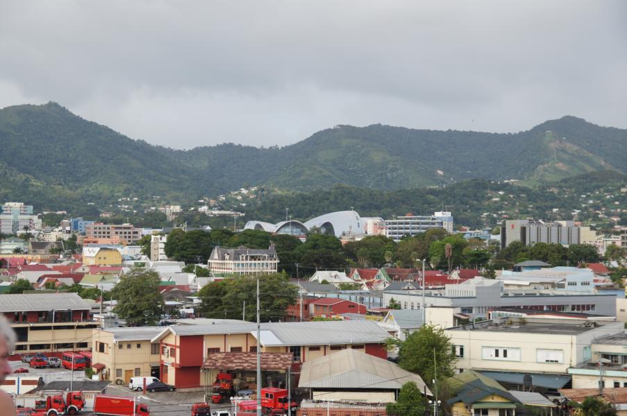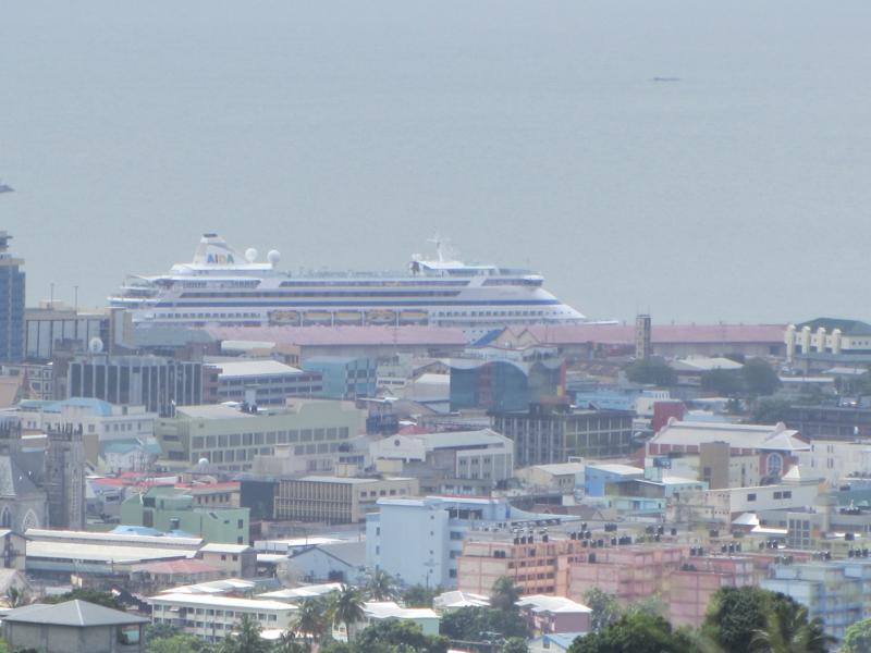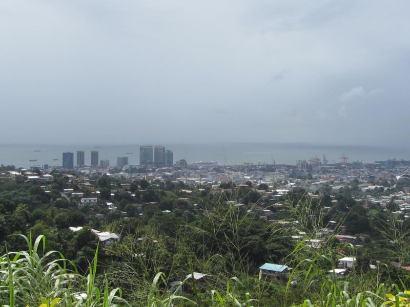 gute Sicht auf Port of Spain haben, ist der Spuk vorbei. Und wenn man genau hinschaut, sieht man sogar die Vita im Hafen liegen.