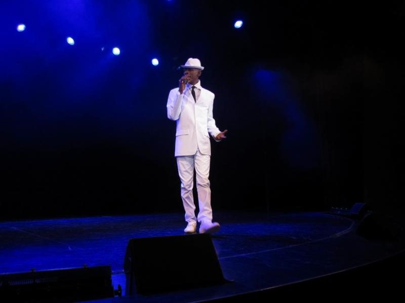Der Mann ist ein Feuerwerk! Drahtig, mit der Hautfarbe einer Zartbitterschokolade, einer Stimme mal rauh oder melancholisch. Er tanzt, flirtet mit dem Publikum und dann tanzen die ersten Gäste schon neben der Bühne und die anderen tun schön „mit dem Popo wackeln“, wie er so nett sagte. In Erinnerung ist mir immer noch das Lied „Purple Rain“, sehr gut gesungen und so richtig was zum träumen. … aber damit ist noch lange nicht Schluß … kleines Guten-Nacht-Bier mit den Fans in der Night-Fly-Bar und dann ab in die Kabine.