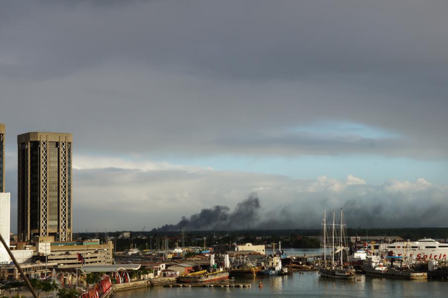 gute Sicht auf Port of Spain haben, ist der Spuk vorbei. Und wenn man genau hinschaut, sieht man sogar die Vita im Hafen liegen.