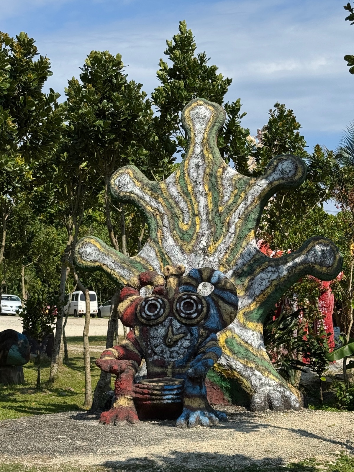 Zuerst fuhren wir zum Yonekoyaki Craft Center, einem Kunsthandwerkszentrum mit angeschlossenem Shisa Figurenpark und einem Verkaufsshop, welches für seine traditionelle Herstellung, der sehr bizarren aber überaus farbenfrohen Shisa-Figuren bekannt ist.