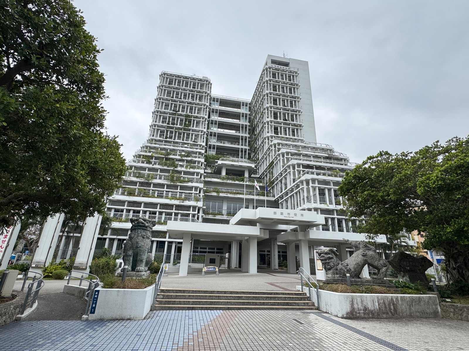 Aber das Rathaus habe ich dann doch noch kurz abgelichtet. Hier sieht man auch wieder diese typischen Okinawa Shisa, sprich, die beiden Löwen.
