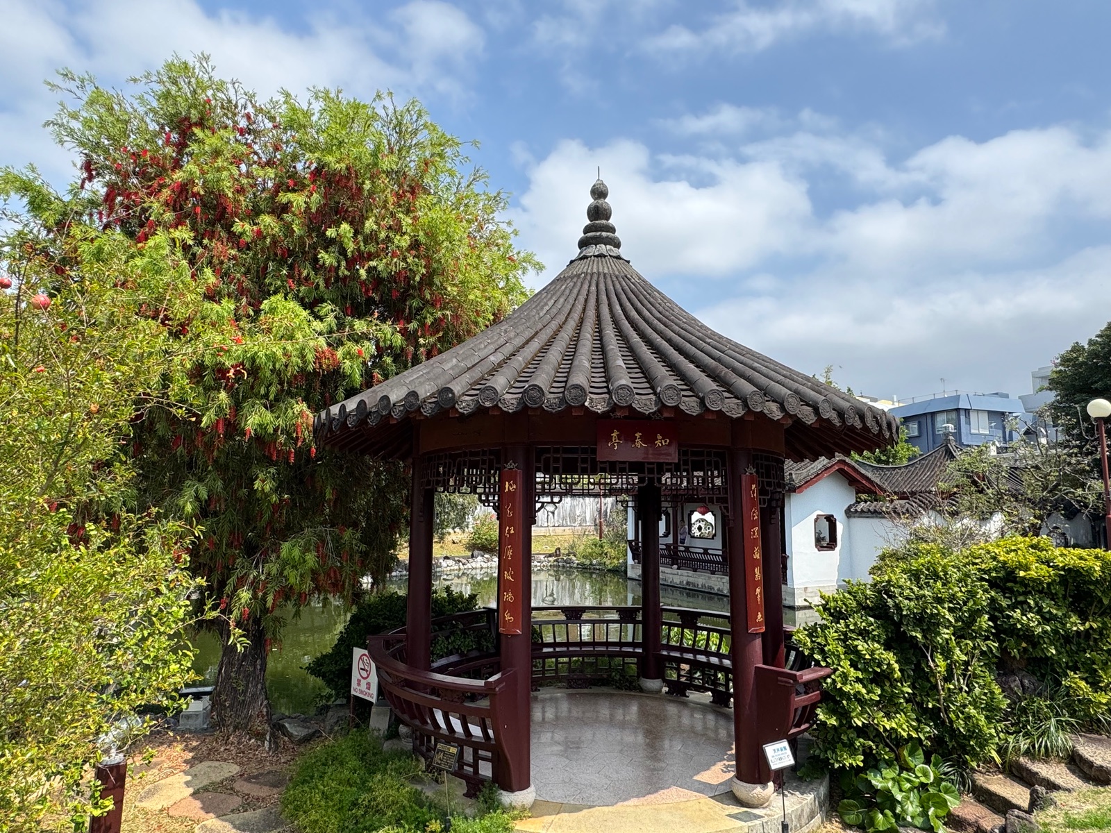 Es ist ein chinesischer Garten, welcher zentral in der Stadt liegt und aufgrund der 10 jährigen Städtepartnerschaft zwischen Naha und Fuzhou/China erbaut wurde.