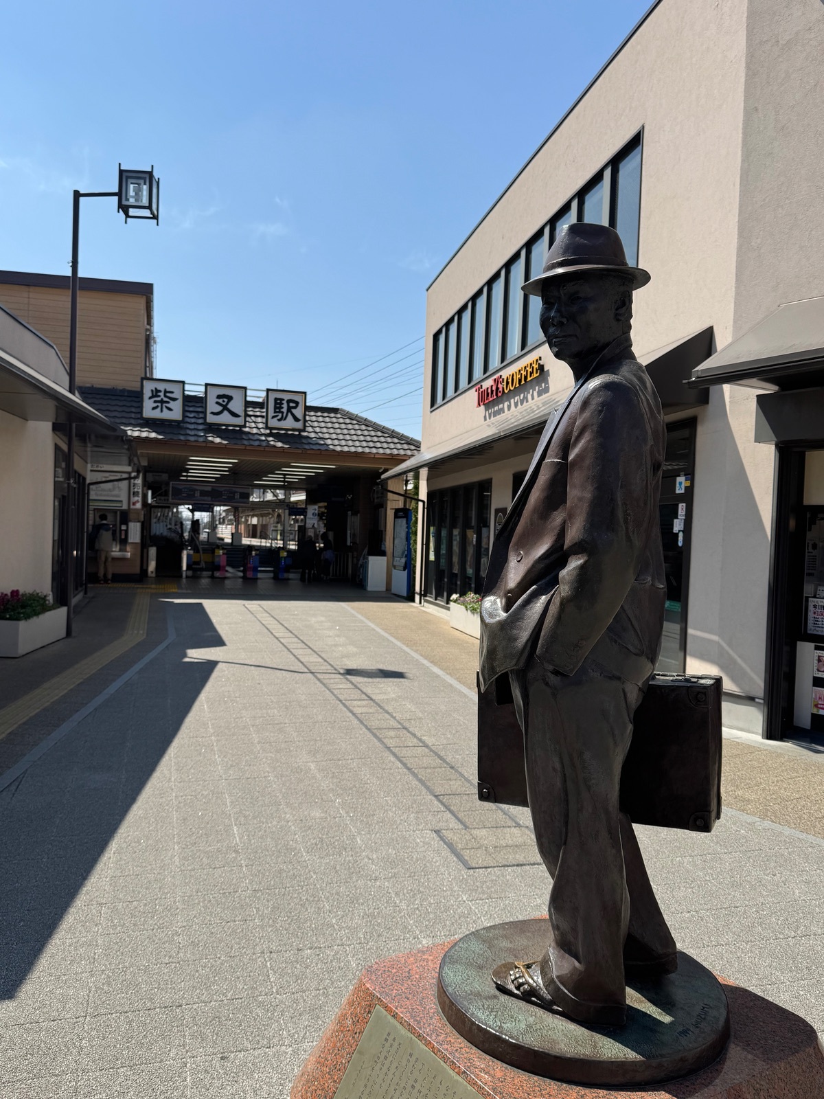 Die Bronzestatue am Bahnhof zeigt den Filmhelden Tora-San.