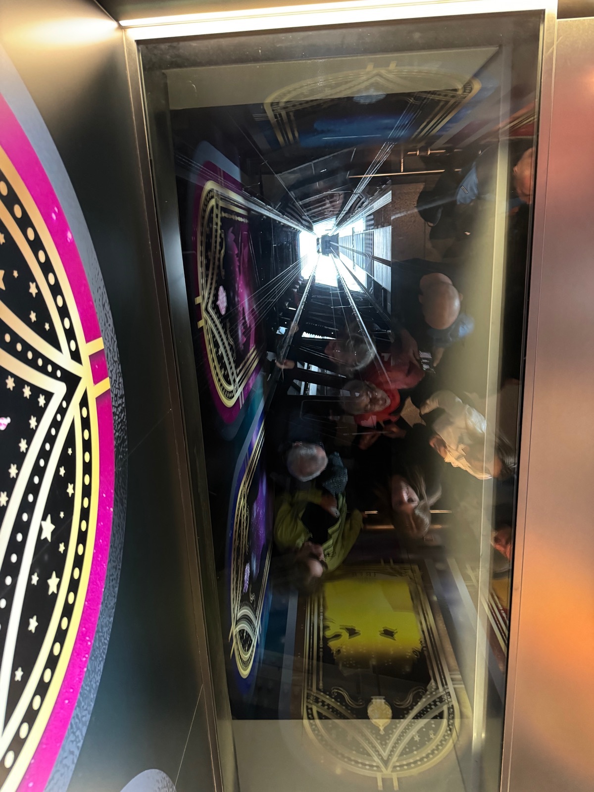 Bei der Auffahrt von der ersten zur zweiten Plattform konnte man, im Innenraum des Aufzugs durch ein Fenster in der Decke, die Fahrt im Schacht mitbeobachten.