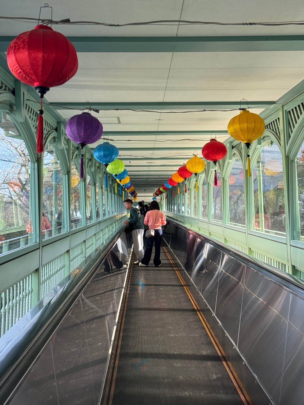 Um die einzelnen hügeligen Ebenen gut zu erreichen, gibt es zwei Band-Rolltreppen.