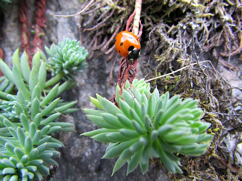 Das kleine Glück am Wegesrand ... Kurz vorm Schiff entdecke ich an einer bewachsenen Mauer diesen Marienkäfer. Es sind nicht immer nur die großen Dinge, an denen man sich in der Natur erfreuen kann. Auch die kleinen, oft gar nicht auf den ersten Blick erkennbaren Schönheiten, sind es wert, beachtet zu werden. Ich nehme dieses Krabbeltier einfach als gutes Omen für die letzten Tage unserer Reise …