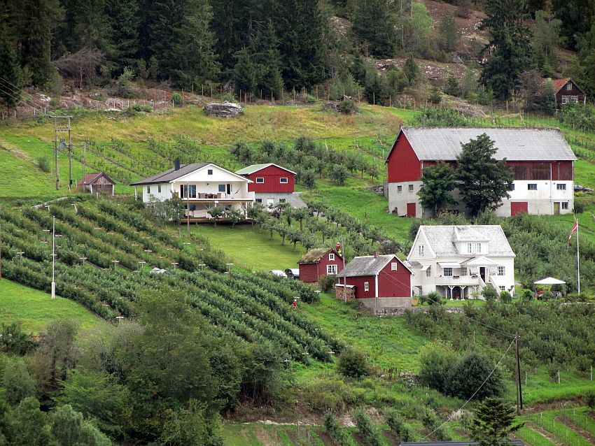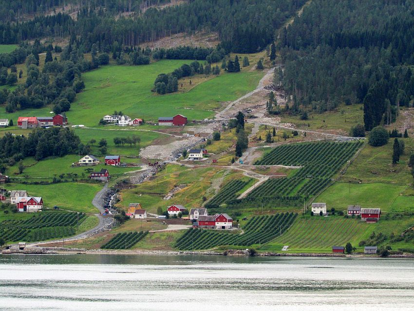 An den Hängen sehen wir wieder überall hübsche Ansiedlungen, kleine Höfe und hier und da eine kleine Obstplantage.