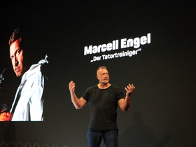 Heute stand für uns zunächst der Vortrag von Marcell Engel auf dem Programm – ganze 90 Minuten und definitiv nichts für zarte Gemüter. Für ihn war es der erste große Auftritt vor rund 500 Gästen, und das Studio X war bis auf den letzten Platz gefüllt.