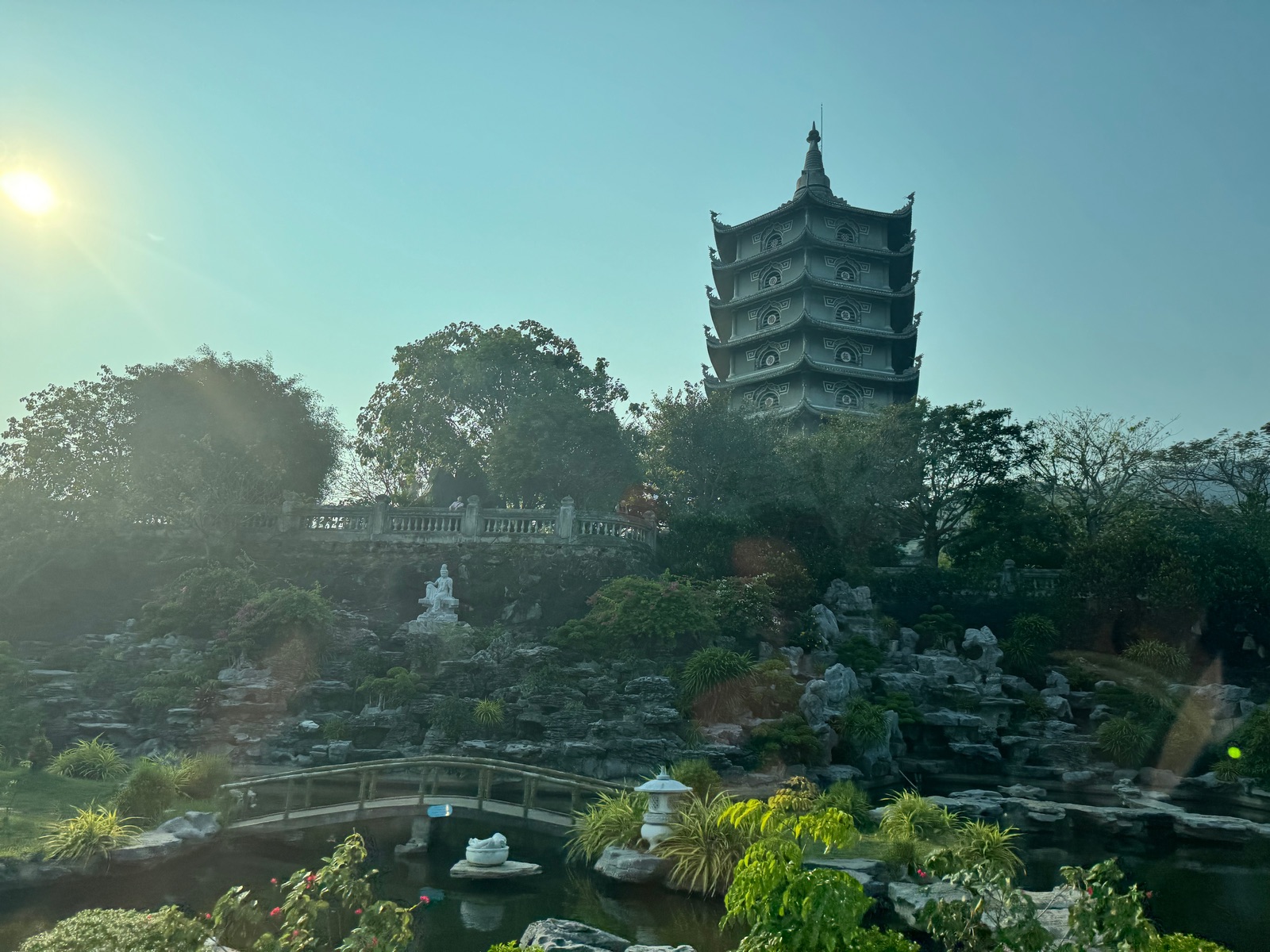 Die 12 Hektar große Anlage ist wunderschön und überall trifft man auf unterschiedliche Buddahfiguren, kleineren Pagoden sowie Drachen- und Löwenmotive, diese zumeist an Treppenanlagen.