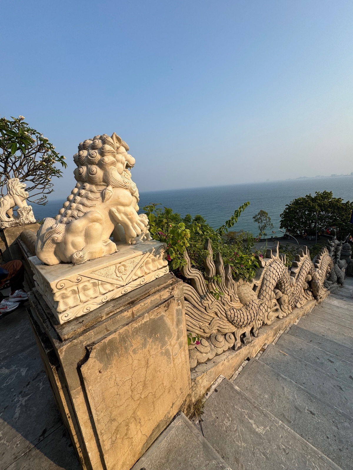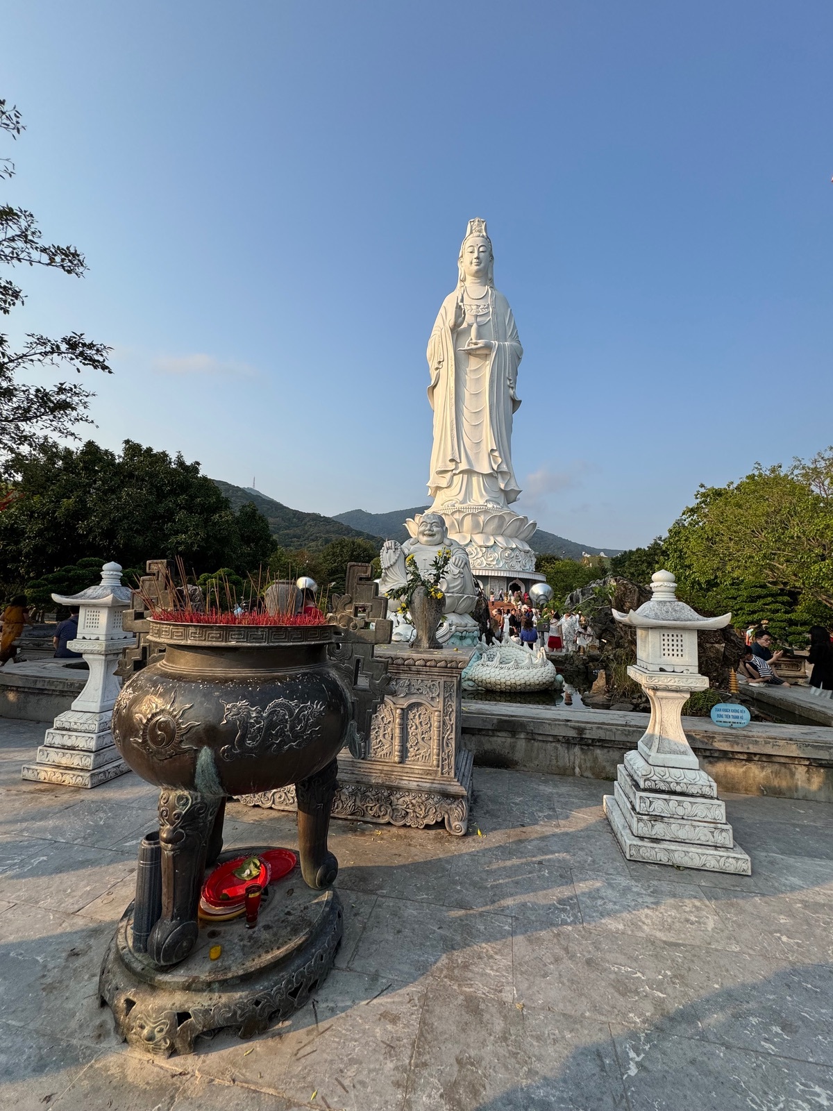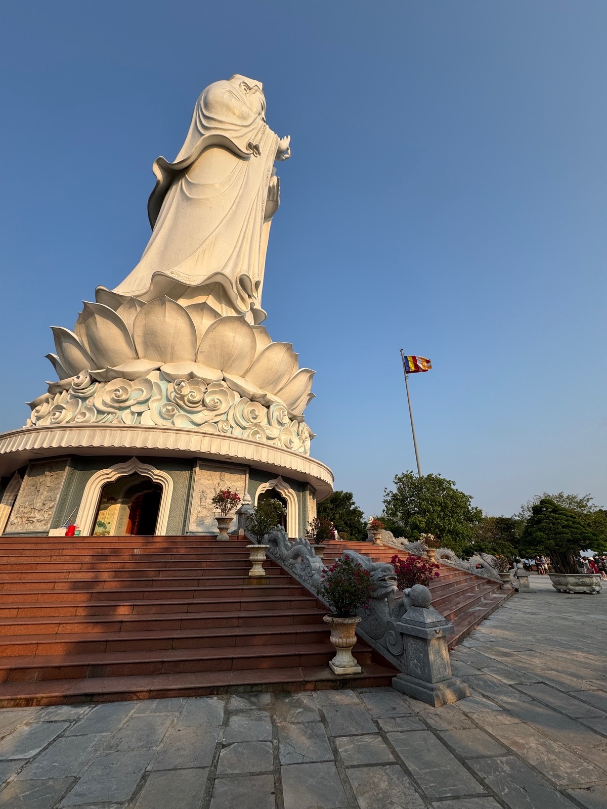 Auf dem großen Areal thront eine 67 Meter hohe strahlend weiße „Buddha-Lady-Statue“ auf einem Lotussockel und schaut hinaus aufs Meer.