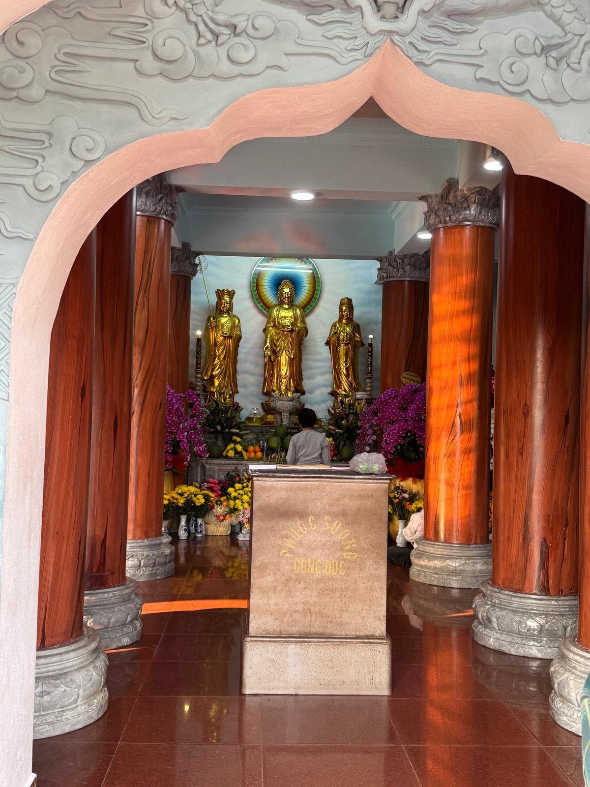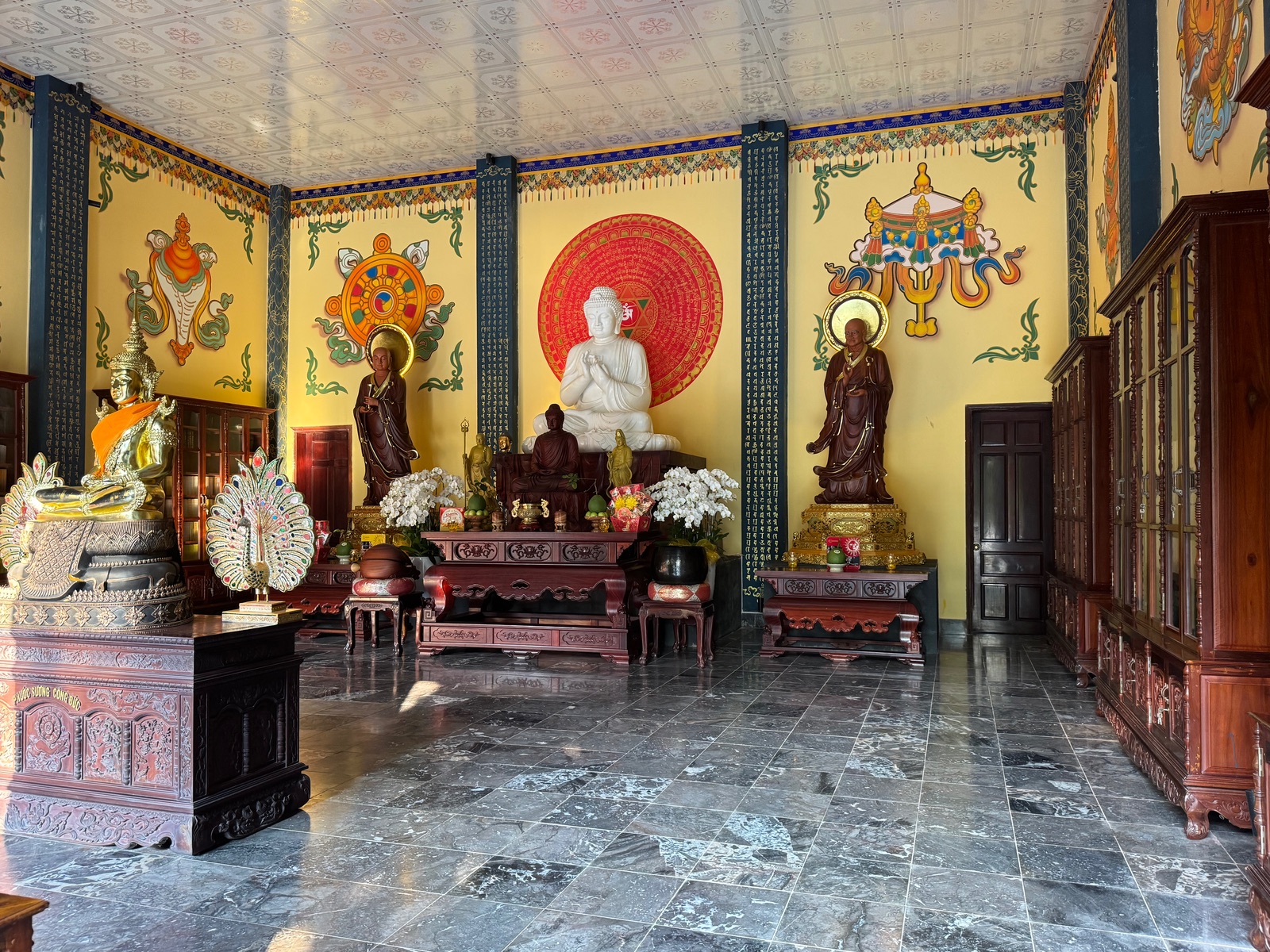 In ihrem Inneren befinden sich mehrere Ebenen mit verschiedenen Buddha Statuen und Altare.