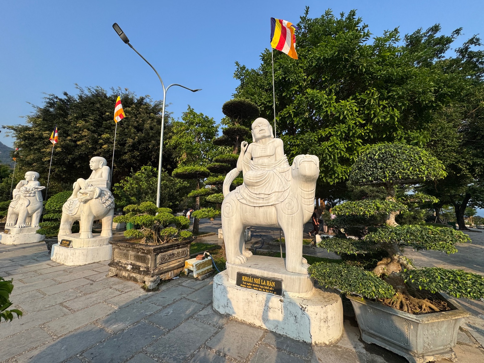 Nachdem wir in Da Nang die berühmte Drachenbrücke, den Han Markt, die Waterfront am Han Fluss mit den hübschen Skulpturen, das Bao Tang Da Nang Museum und auch den Strand vor der Halbinsel Son Tra besucht hatten, fuhr uns der Bus nach Bai But und auf den sogenannten „Monkey-Mountain“.