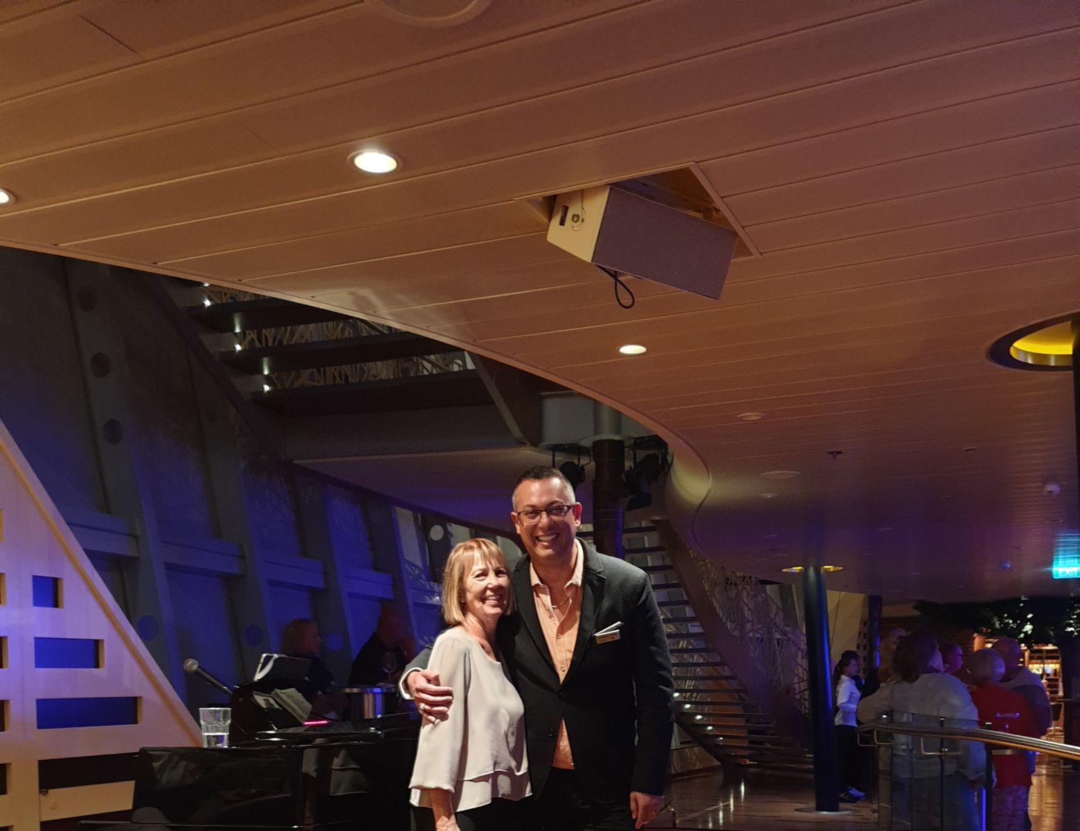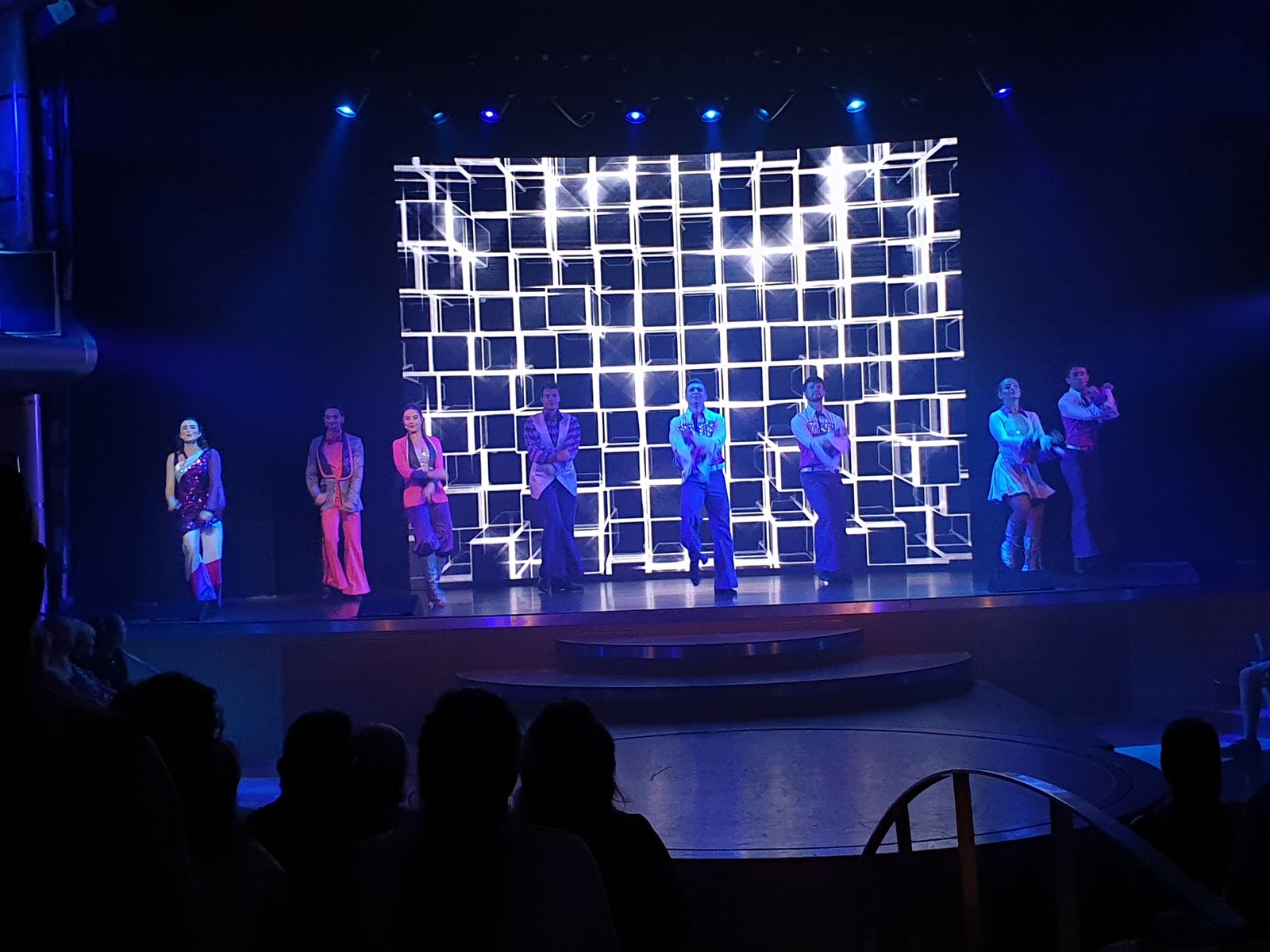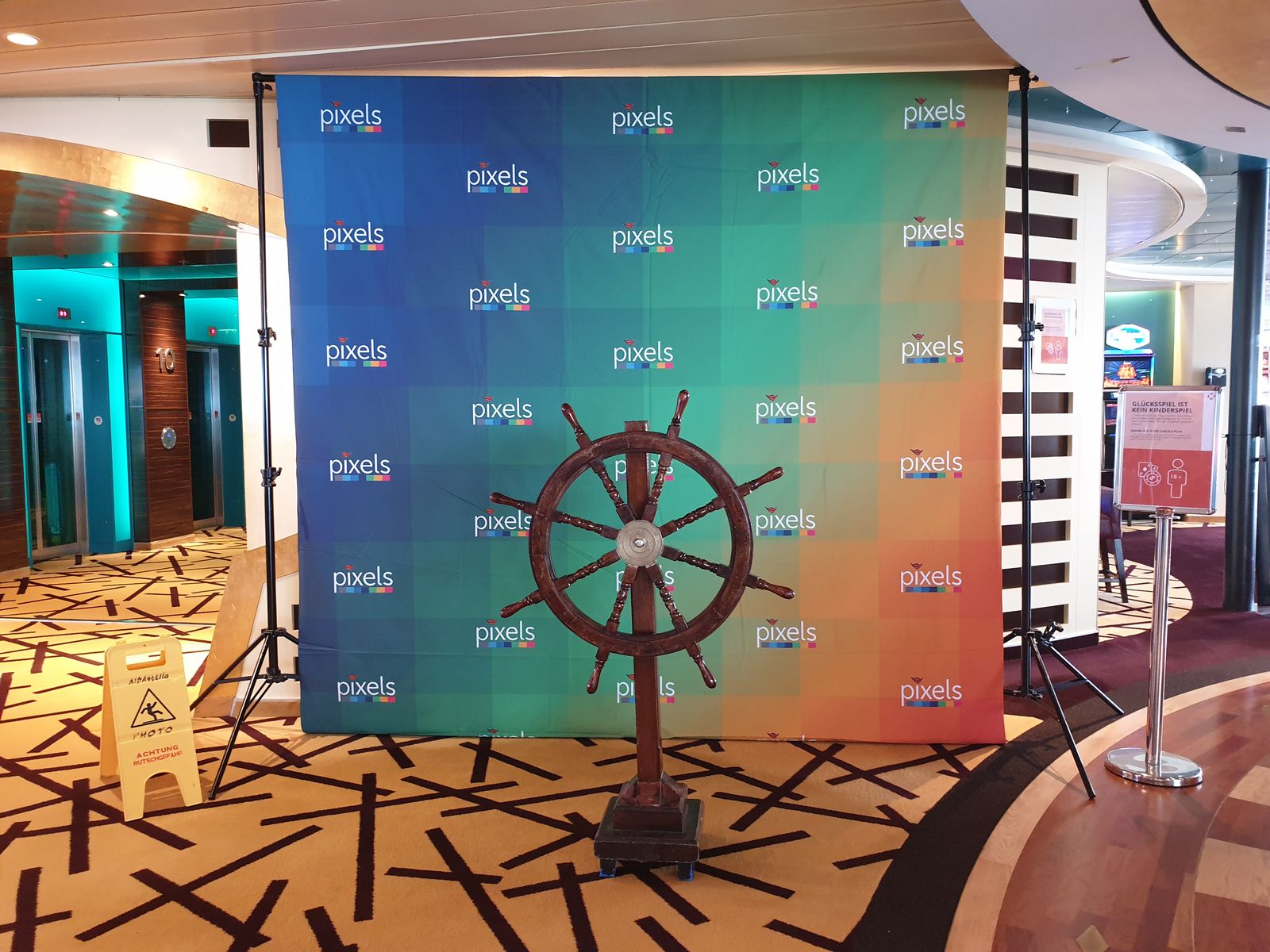Wir überlegen, was wir noch machen können, wenn wir in der Kabine die Bücher abladen. Okay, Koffer aufs Bett und die ersten Dinge werden sortiert und schon mal eingepackt. Ich mag es nicht so gerne, wenn diese traurige Angelegenheit – Abschluss der Reise – am letzten Abend erledigt werden muss. Da möchte ich doch bitte die letzten Stunden an Bord entspannt mit meinem Mann genießen. Jetzt aber schnell eine Weile an die frische Luft. Oh, diese Leinwand kenne ich auch noch nicht.