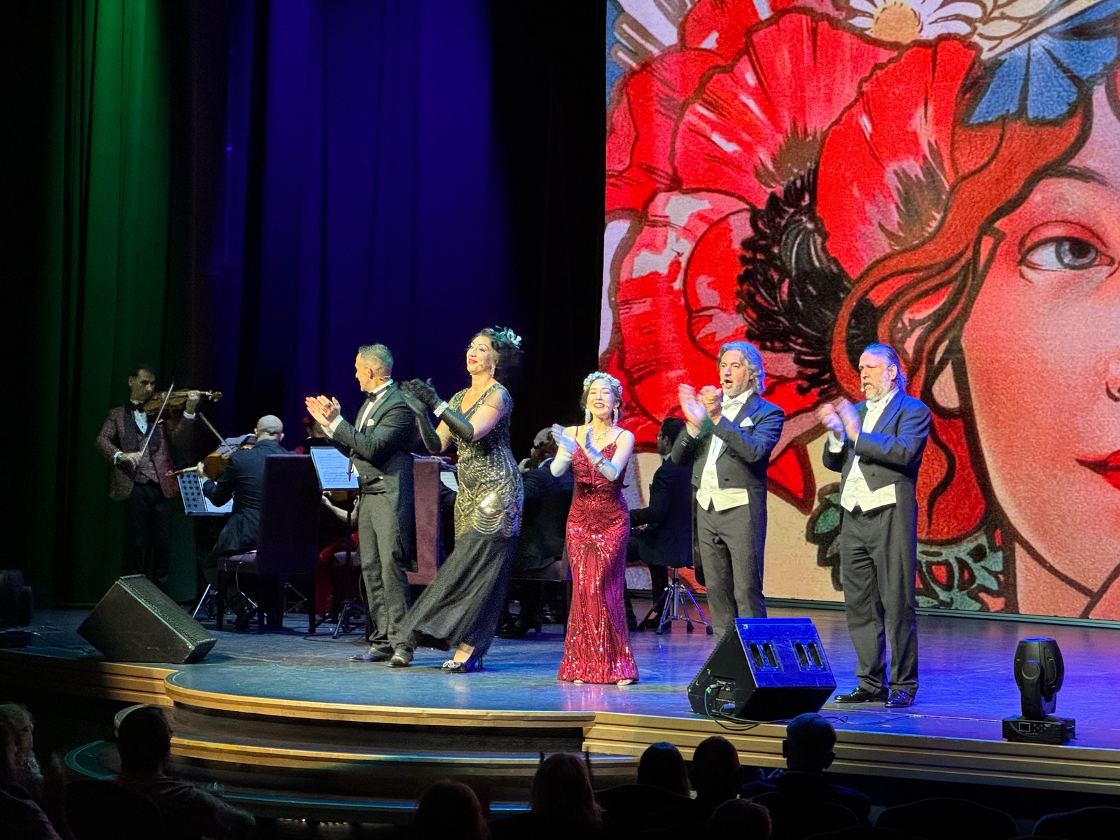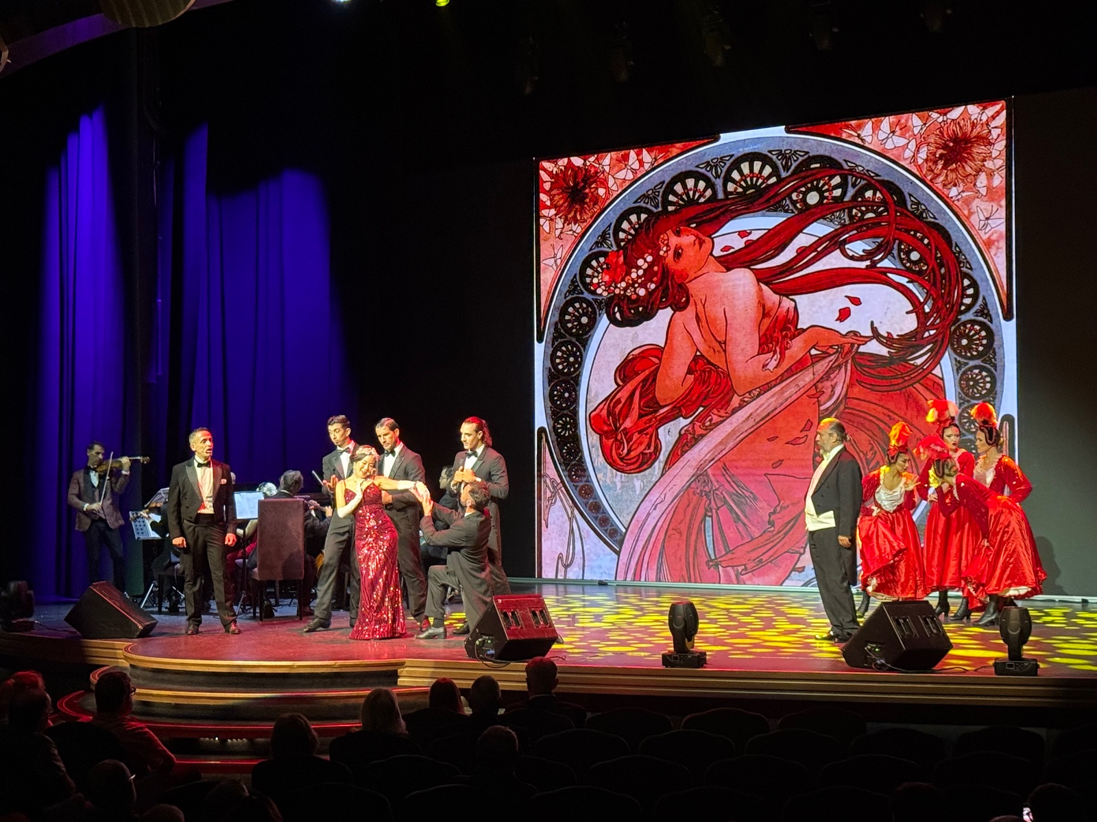 Vor Monaten, erklärte vorab die Cruisedirektorin, haben die Künstler dazu deutsche Gesangstexte einstudiert, um die Operette auch in der deutschen Originalfassung aufzuführen.