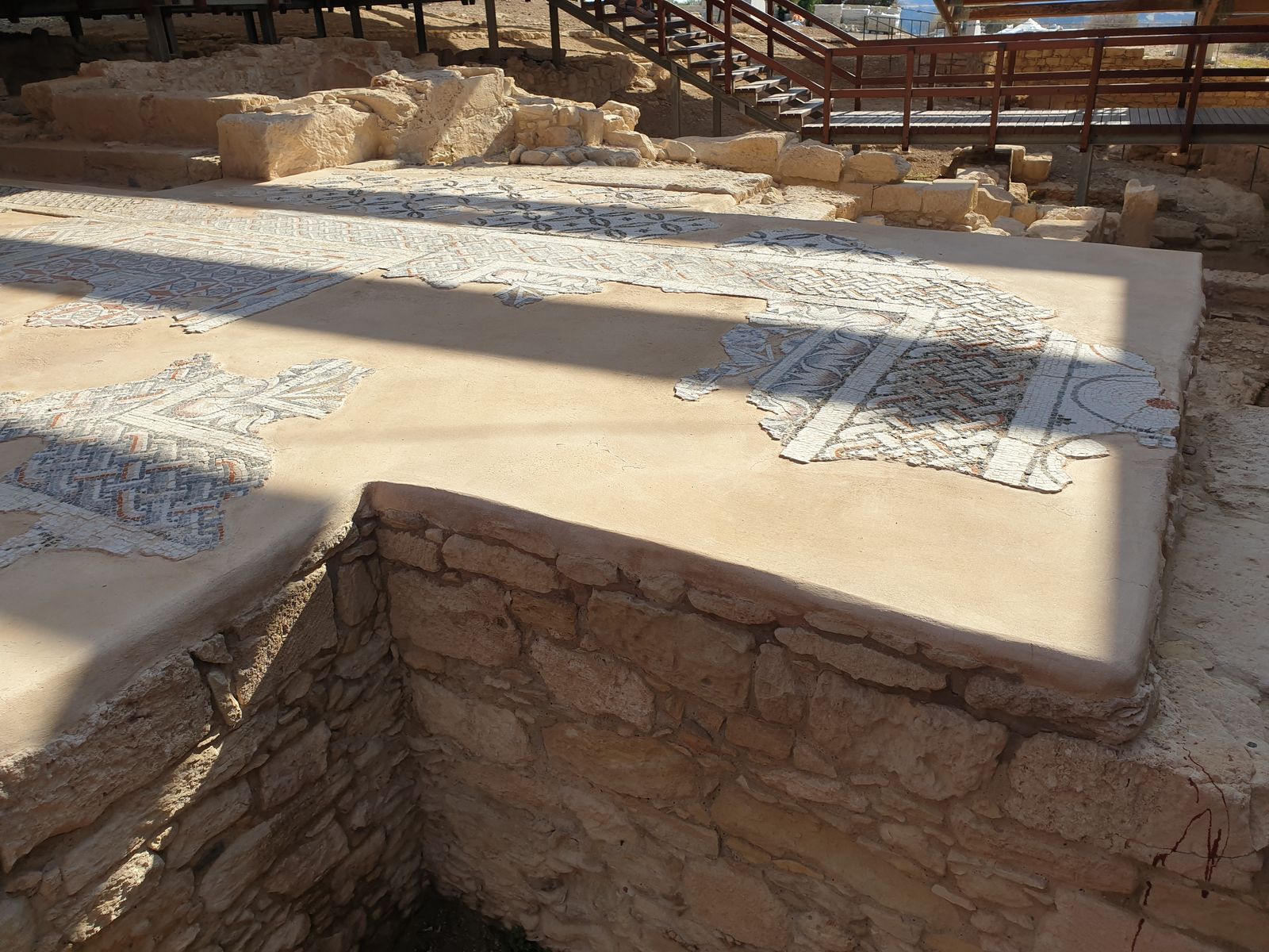 Weiter geht unsere Fahrt in Richtung Kourion, zu den eindrucksvollsten archäologischen Fundstätten auf Zypern. Bekannt ist das riesige Theater, das rekonstruiert wurde und heute für Konzerte und Theatervorstellungen genutzt wird. Die Lage ist einmalig, man kann direkt aufs Meer schauen. Bei den Ausgrabungsarbeiten stieß man auf eine ehemalige Villa, die wunderschöne Mosaikböden hatte. Gut geschützt unter einem riesigen Dach, schauen wir auf die bunten Steine.