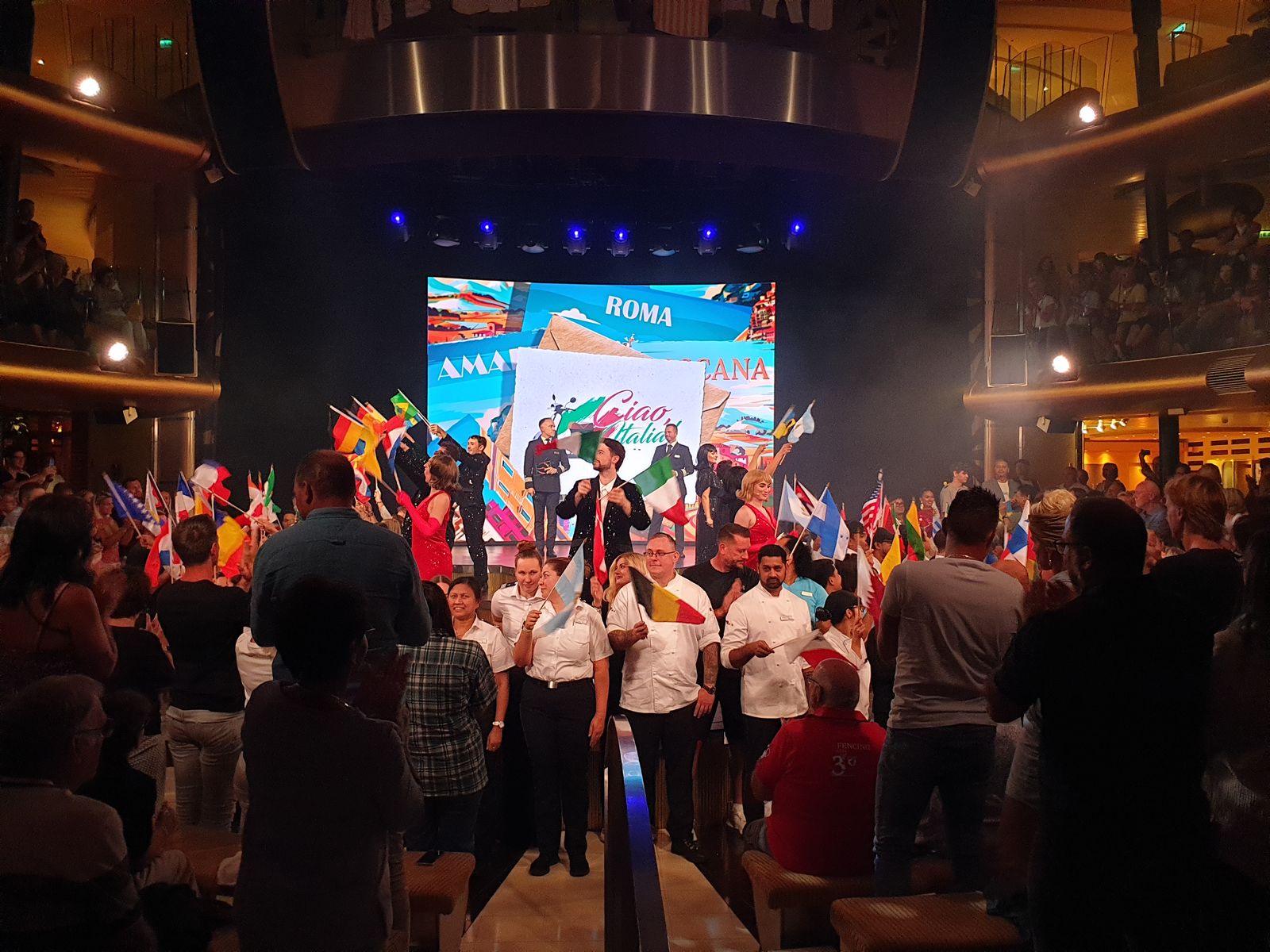 Wir haben Glück und finden noch zwei Hocker an der Stella Bar und können die neue Show „Ciao, Italia“ anschauen. Meine Güte, wie schön sie ist.