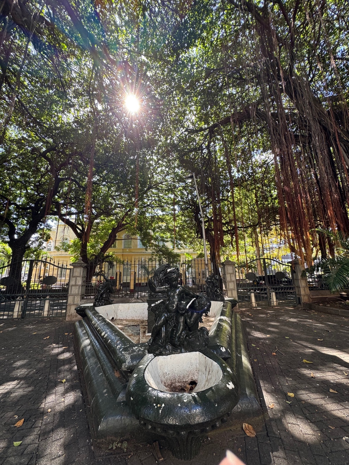Diese kleine Parkanlage beherbergt riesige uralte Banyan-Bäume, die angenehm Schatten spenden.