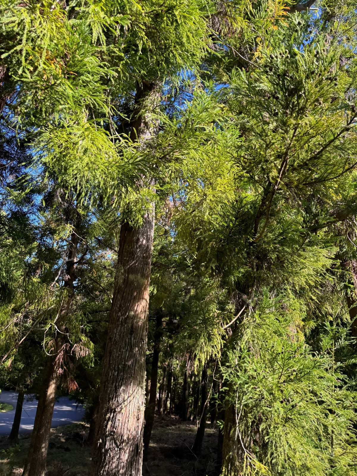 Diesen Weg, auf der „Route de Volcan“, welche durch La Plaine des Cafres führt, säumen Kryptomerien (japanische Sicheltannen).