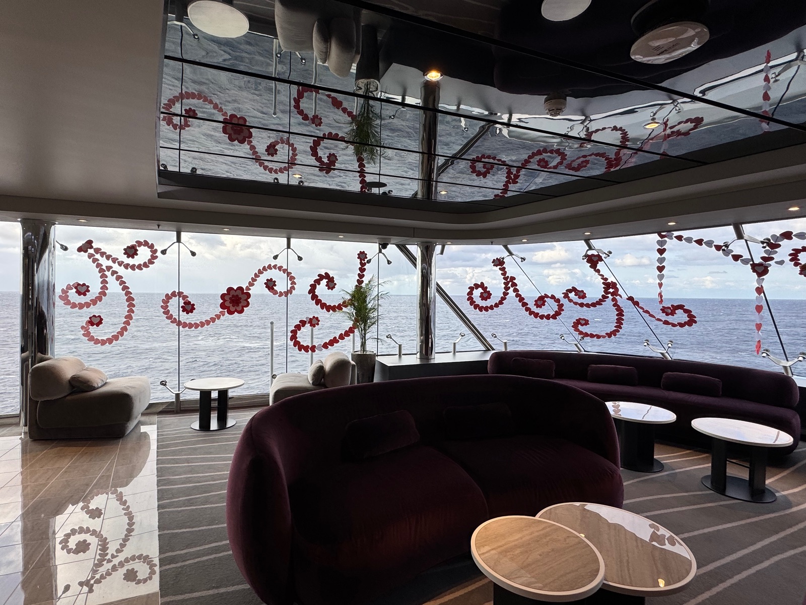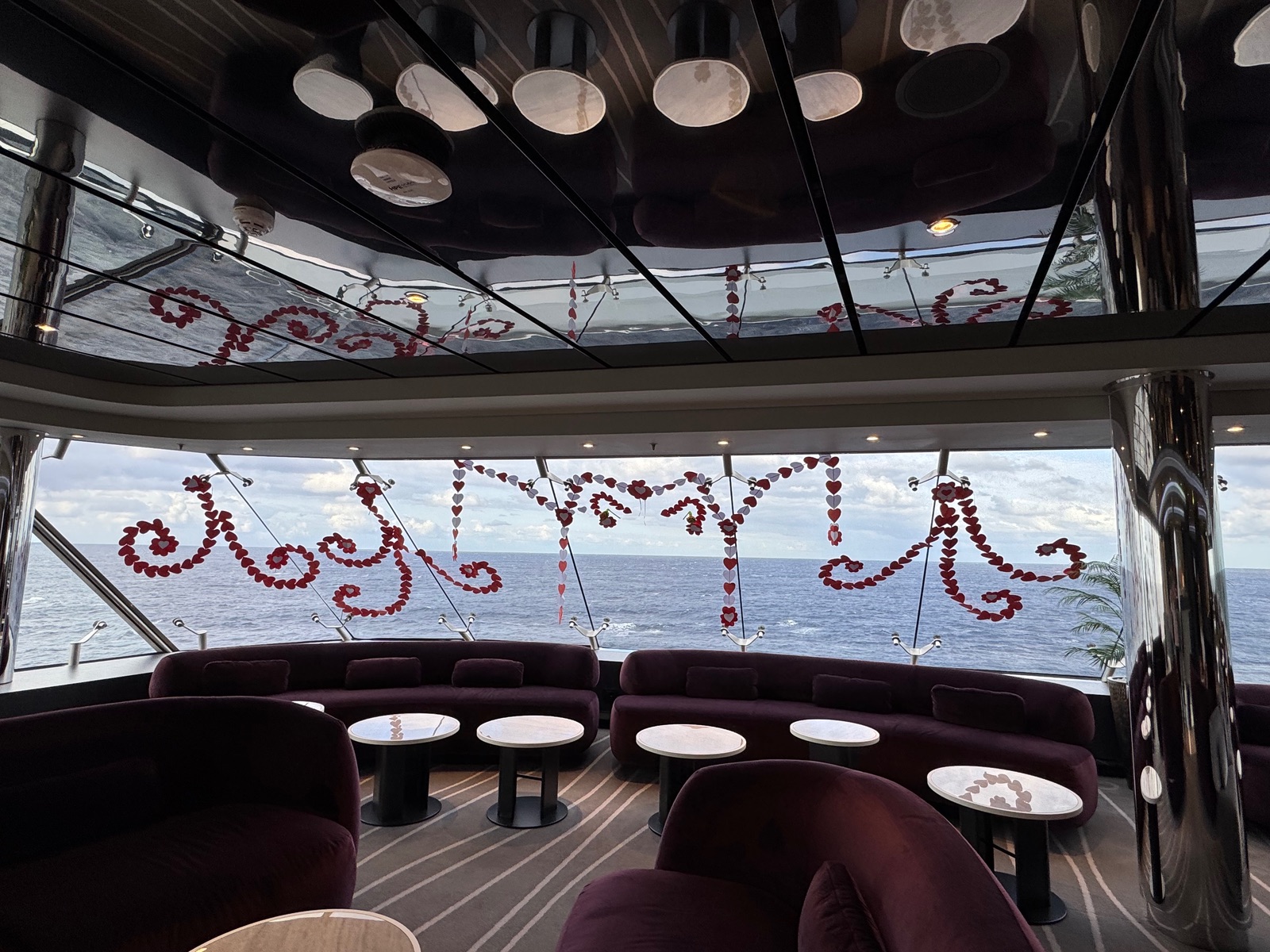 In einer Ecke der Top Sail Lounge sind die Scheiben dekoriert.