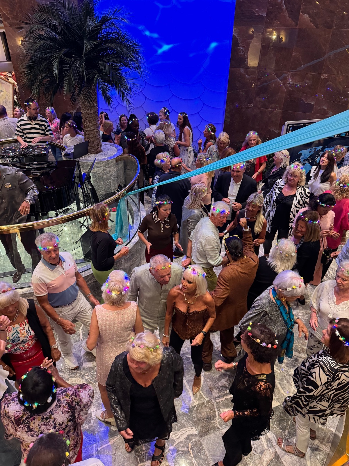 Das Animations-Team verteilte leuchtend blinkende Blumenkränze und der DJ spielte auch schon bald auf, die Party begann und wir mittendrin.