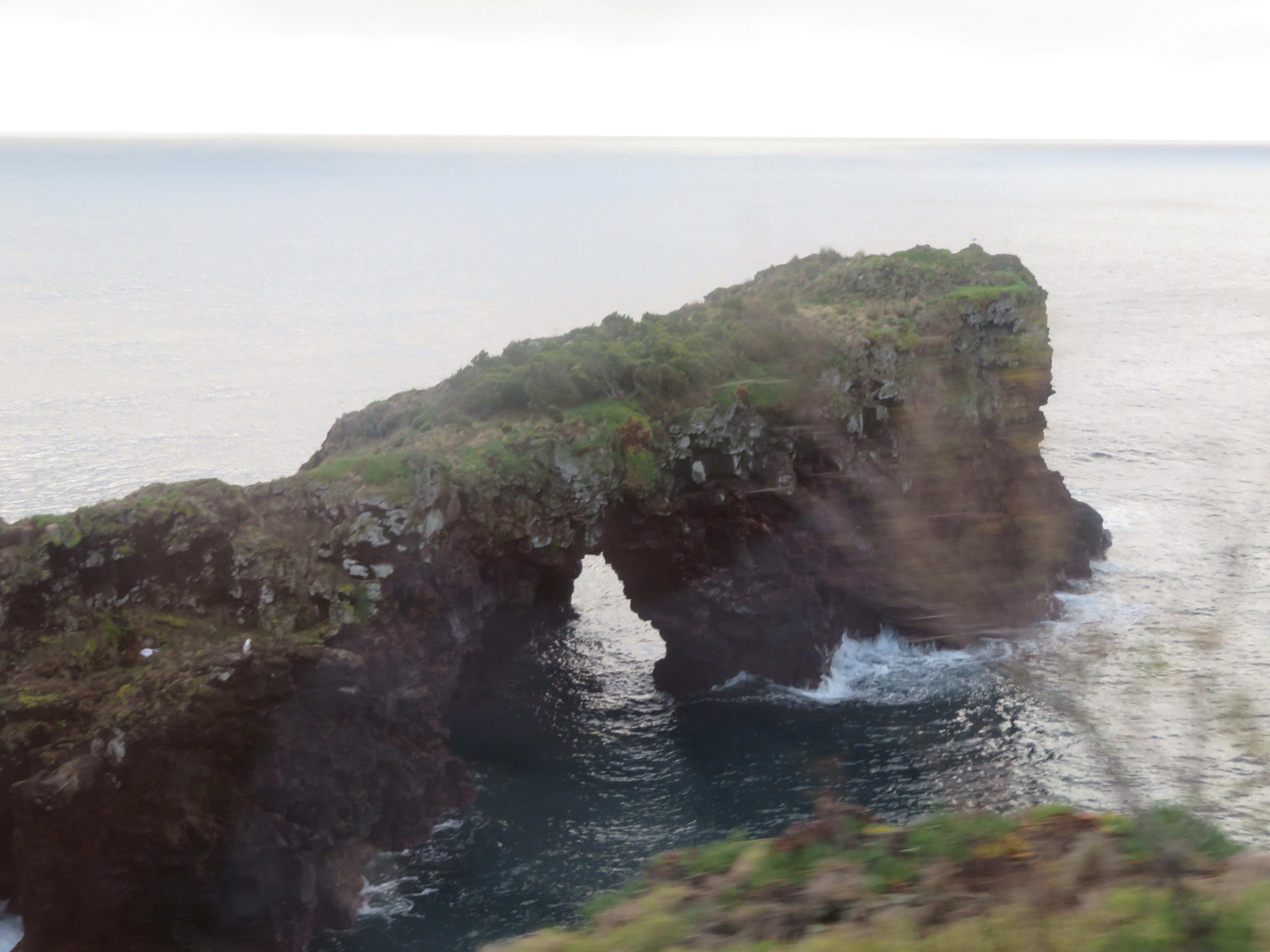 Wir fahren weiter zur einsamen Westspitze Faials und kurze Zeit später erreichen wir auch unser erstes geplantes Ziel: Den Vulkan dos Capelinhos. Und er ist erst gute 50 Jahre alt. Seine Geburt fand 1957 statt, er erhob sich direkt aus dem Meer.
