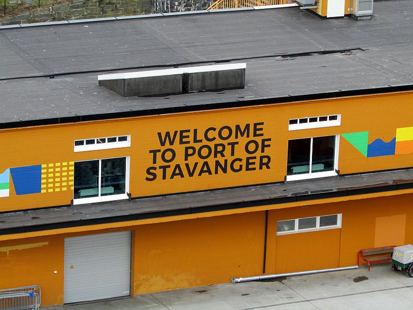 "Welcome to Port of Stavanger" - Begrüßungen wie diese hier am Hafengebäude zaubern mir immer wieder ein zusätzliches Lächeln in mein Gesicht. Mittlerweile ist es so, dass ich in einer Hafenstadt am liebsten weder mit Auto, Bus oder Flugzeug ankomme, sondern stilvoll mit einem Schiff. Und wenn ich dann nur diese vier Buchstaben - "PORT" - lese, dann ist das einfach nur toll und vermittelt mir ein irgendwie erhebendes Gefühl.