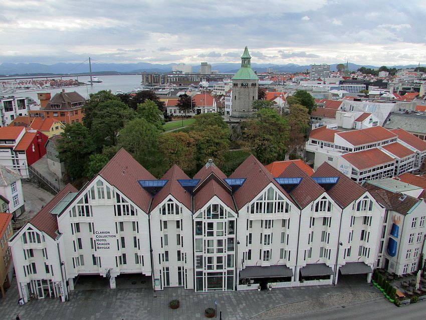 Fast ist es ein bisschen wie "nach Hause kommen", denn in Stavanger war ich im Laufe der Jahre bereits mehrfach - überwiegend bei Regen oder zumindest bedecktem Himmel. Schön ist es hier und weit ist der Blick über die die Ölmetropole Südnorwegens umgebende Landschaft. Und dennoch ist es hier so ganz anders. Wer hier hohe, gezackte Felsen mit teils schneebedeckten Bergen zu finden glaubt, von deren Spitze der eine oder andere Gletscher "züngelt", der wird vergeblich suchen.