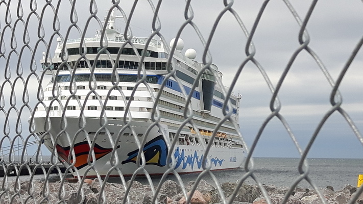 Mir wird auch so langsam kalt und ich suche mir einen windgeschützten Platz neben der Bühne. Die Stunde der Wahrheit ist da: "Liebe Gäste, hier nun die Zahlen ... !" Die Finger sind steif und ich mache mir nur ein paar Notizen von dem, was getrunken und gegessen wurde. 850 Liter Eis – kann gut sein, die Schlangen waren an der Theke immer lang, 24.000 Geschirrteile wurde täglichen gespült, 3.800 Liter Bier, 2.800 L Weißwein und 2.500 L Rotwein, 900 AperolSprizzzz getrunken. Hossa – war doch eine durstige Gesellschaft an Bord. Bei einigen Positionen waren wir dabei und haben unseren Beitrag geleistet!!! Schnell noch kurzes AIDAsehen mit Thomas und Andi, der sich auch eibe warme Jacke angezogen hat und dann mache ich mich auf die Suche nach meine Schwester.