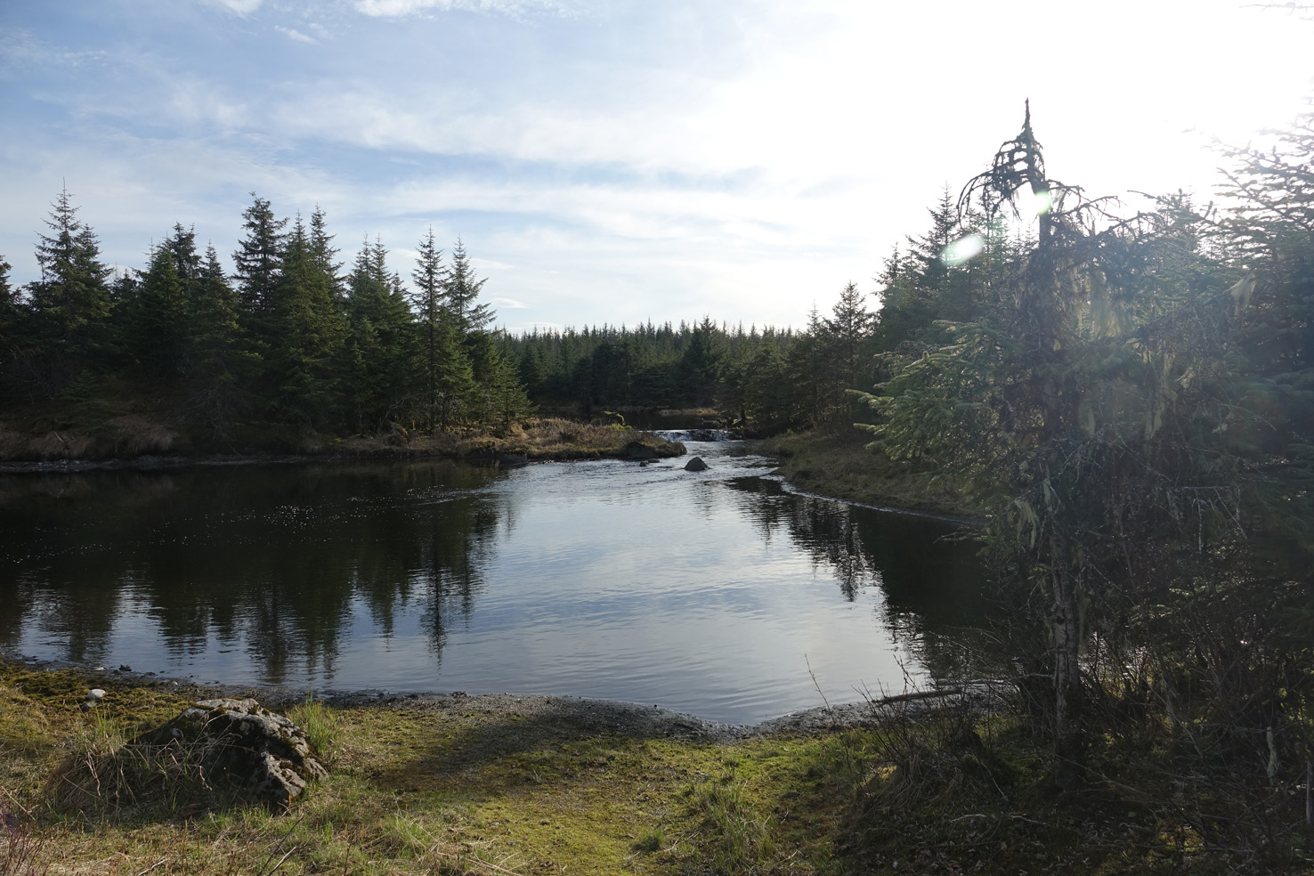Ketchikan, hier ging es mit Schlauchbooten zu einer Insel, auf der es noch einen Regenwald gibt. Zum Regenwald, gab es auch wieder etwas Regen. Alles schön grün, es riecht frisch nach Wald, in weiter Ferne sah man Wale, aber zu weit weg für sinnvolle Bilder. Dafür sahen wir vom Boot aus einen Weißkopfseeadler in seinem Horst.