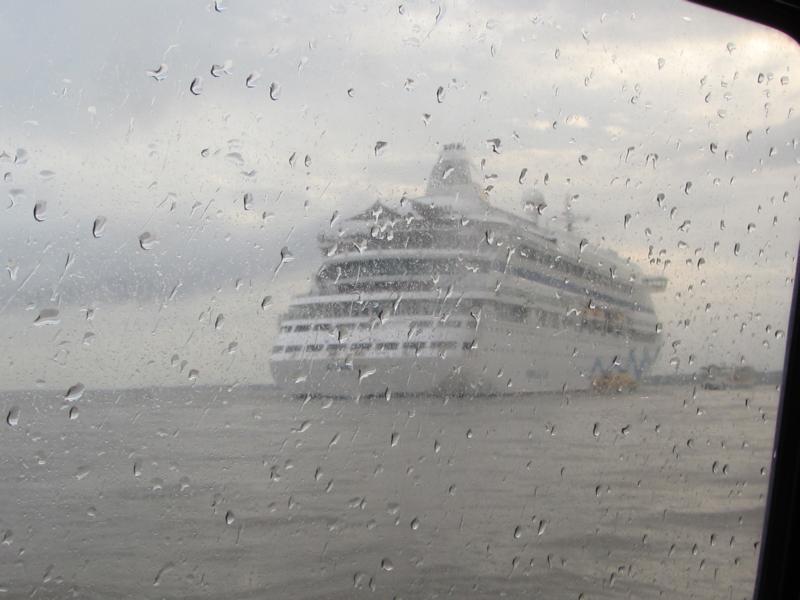 Die Zeit drängt etwas, denn es kann sein, viele Ausflügler kommen zurück von den Touren und wir müssen auf das Tenderboot lange warten. Dann nehmen wir eine Taxe bis zum Fort und laufen über den Markt zur Anlegestelle des Tenders zurück und regnet es erneut, als wir am Tenderhafen eintrudeln.