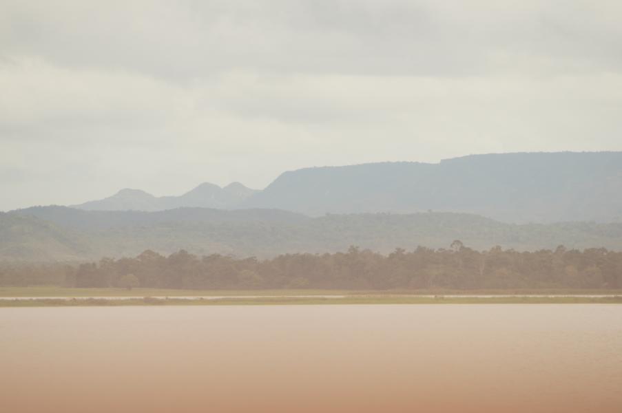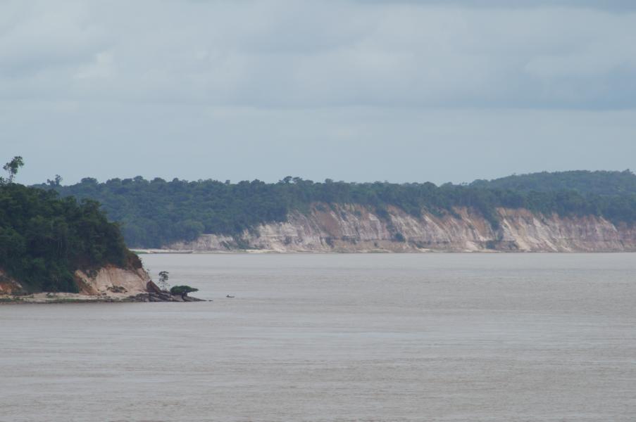 Es ist keine Spur langweilig, das Ufer des Amazonas anzuschauen. Ich komme nicht dazu, irgendwas anderes zu tun. Schauen, schauen, schauen ... Die ist Luft ist heute wieder leicht diesig und gibt dem Ufer sowie den dahinterliegenden Bergen eine sanfte Tönung.