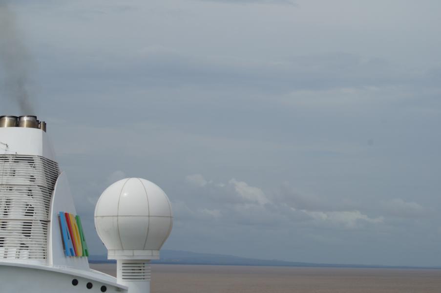 Erst fährt die Vita wieder ein gutes Stück hinaus aufs Meer, das erscheint mir doch recht komisch. Aber es klärt sich auf, sie umfährt eine große Sandbank im Flußdelta und biegt dann in den Amazonas ein, Santarém entgegen. Die Passage, die von den Schiffen benutzt werden, ist sehr schmal und deshalb der kleine Umweg. Unsere kleine Lady muss 1317 Kilometer zurücklegen, bis sie wieder irgendwo fest angebunden wird. Gemächlich ziehen ein paar Frachtschiffe vorüber, alles steht unter dem Motto "Langsamkeit"