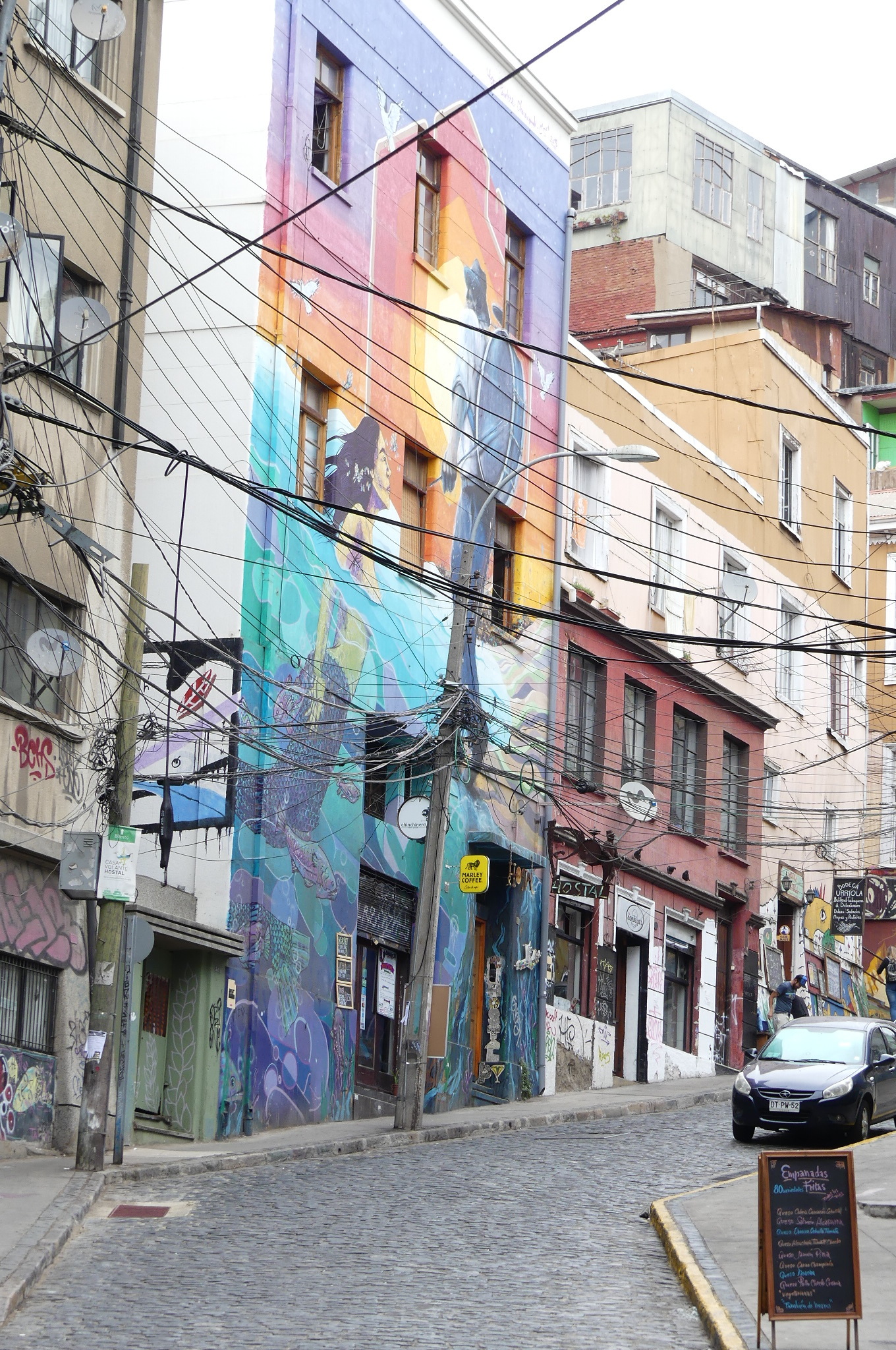 Der Nieselregel hat zu unserer Freude aufgehört und so können wir unsere Tour durch Valparaíso nun zu Fuß weiter fortsetzen. Wir spazierten durch das Künstlerviertel mit vielen bemalten Hauswänden und bekommen so einen Eindruck des echten Valparaíso. Zum Abschluss bleibt uns noch ein wenig Zeit, um den kleinen Trödelmarkt am Marktplatz zu besuchen um schon einmal das ein oder andere Souvenir zu erstehen.