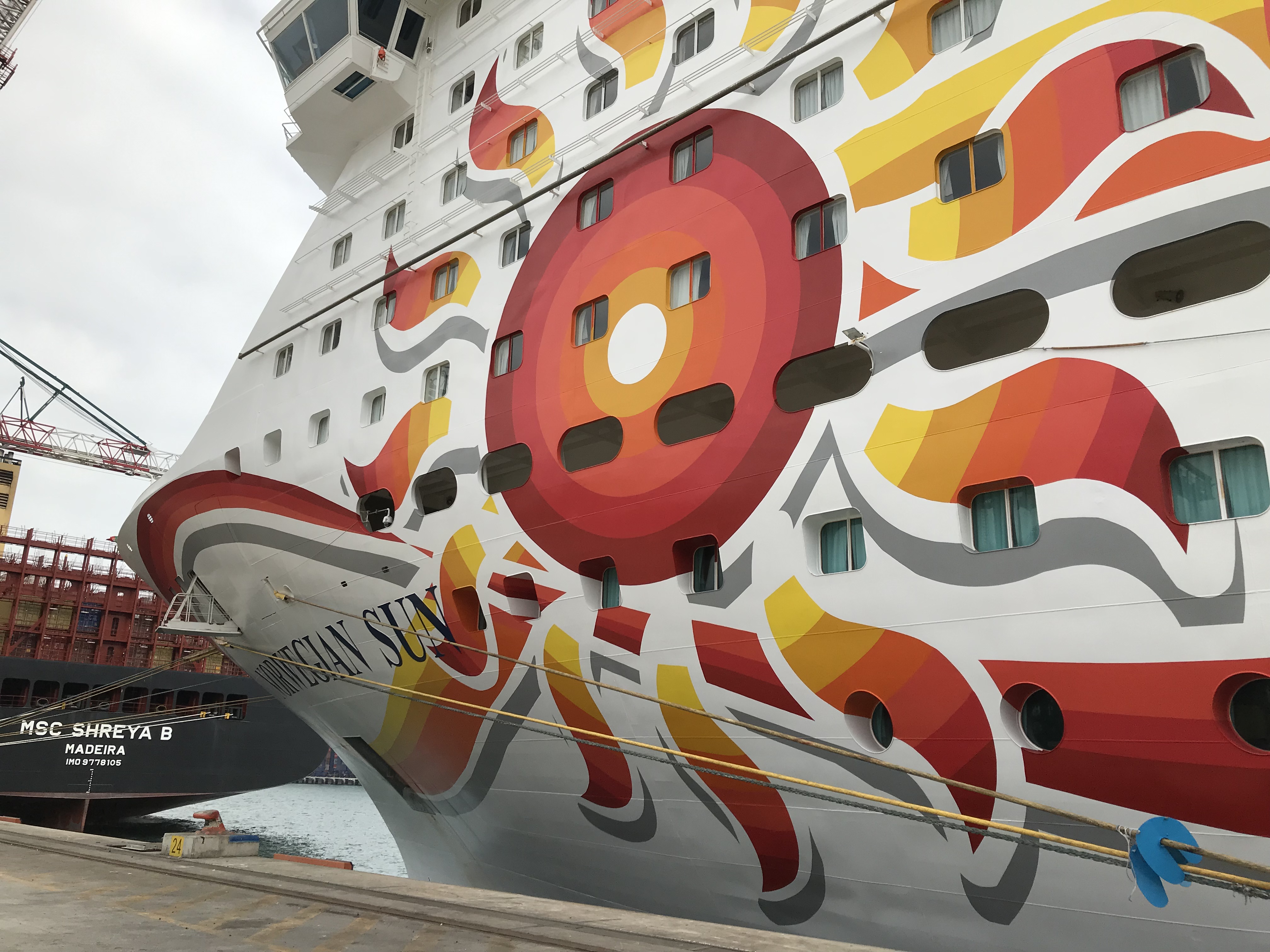 Gegen 13:00 Uhr brechen wir in das ca. 50 Kilometer weiter südlich gelegene San Antonio auf. Die Fahrt bis zum Kreuzfahrthafen dauert weitere 1 ½ Stunden und gegen 14.30 Uhr erreichen wir das Hafenterminal wo die Norwegian Sun bereits auf uns wartet. Dort geben wir zuerst unser Gepäck ab und checken in aller Ruhe für unsere Kreuzfahrt ein.