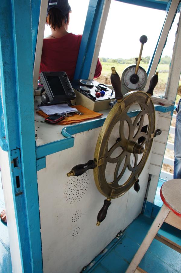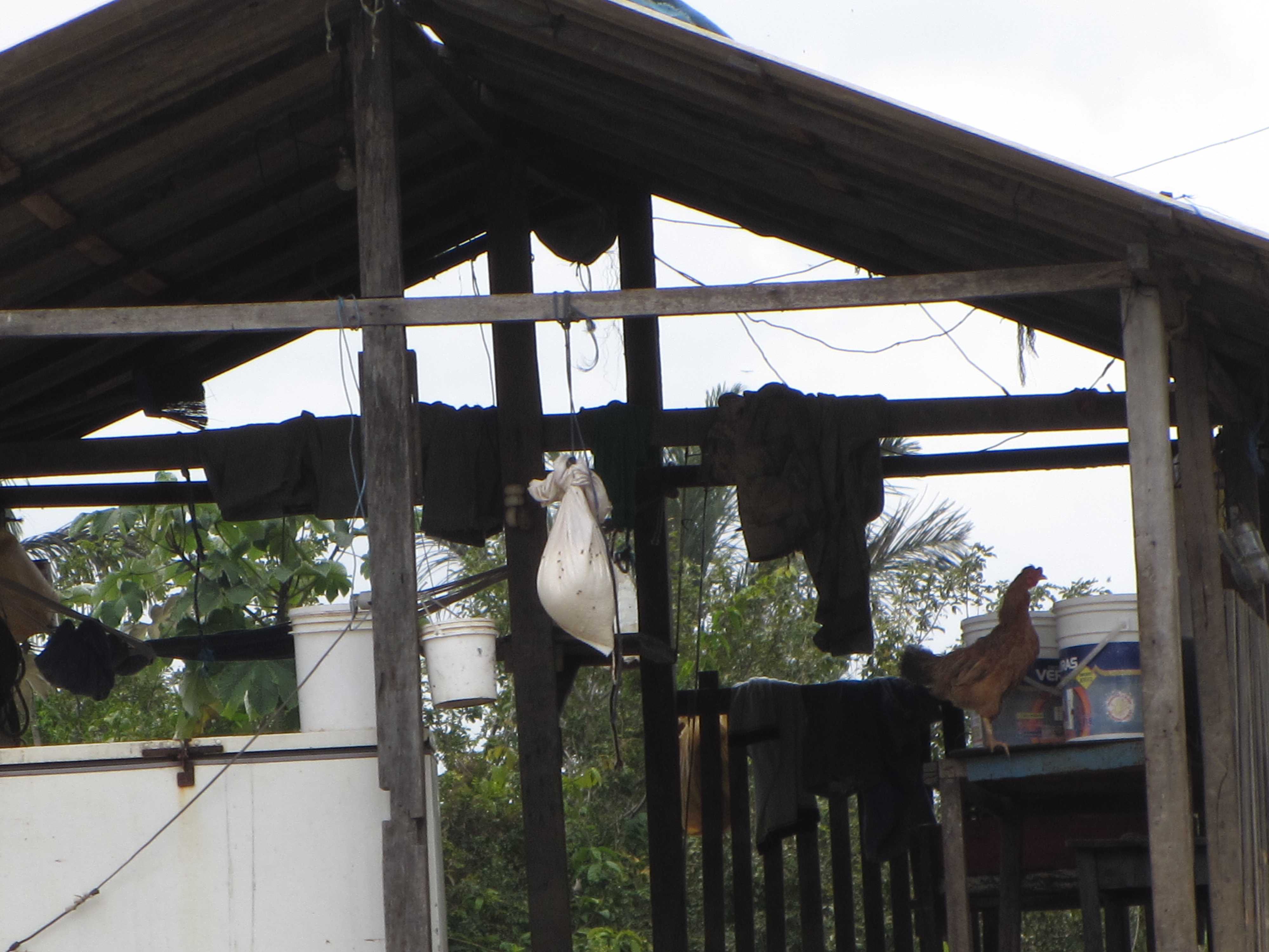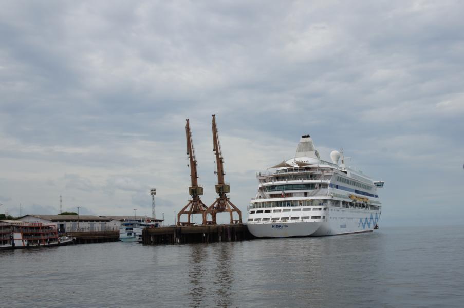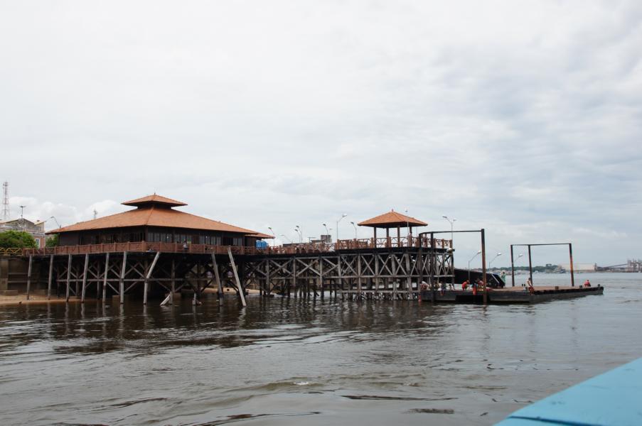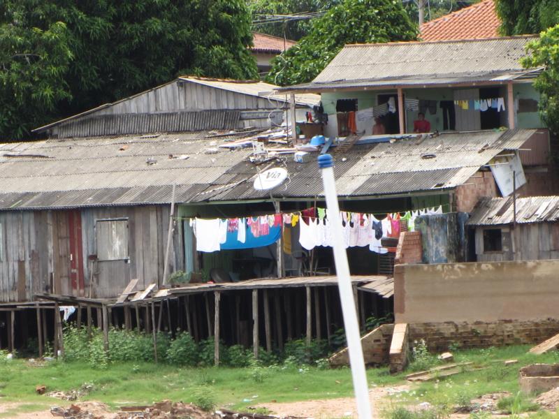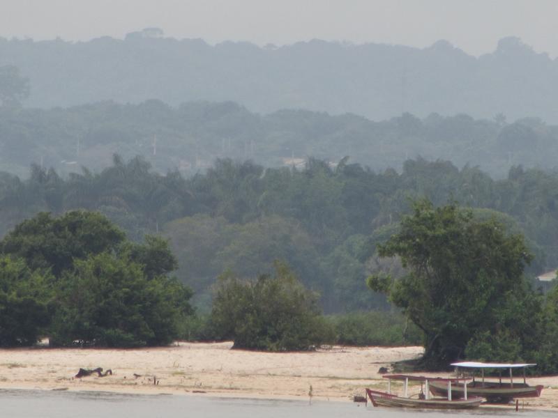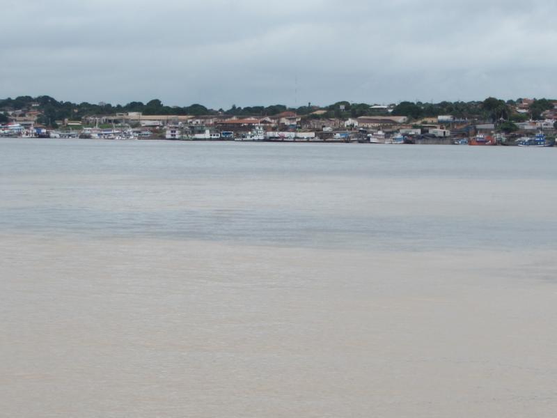 Zu Santarém: Die Stadt liegt auf halben Weg zwischen Belém und Manaus. Sie ist eine der ältesten Siedlungen (gegründet 1661) im gesamten Amazonasgebiet und hat heute fast 300.000 Einwohner. Rinderzucht und Fischfang sorgen für den Lebensunterhalt der Bevölkerung – auch entlang der vielen kleinen Nebenflüsse. Keramikarbeiten und bunte Hängematten finden hier Abnehmer. Holz und Paranüsse sind ebenfalls Handelsware. Soja, ein wichtiger Exportartikel, wird in direkter Nähe unserer Anlegestelle verarbeitet und in großen Lastkähnen auf die Reise geschickt – bis hin nach Europa. Direkt am Pier liegt mit Stacheldraht eingezäunt eine Firma, die das Soja vermarktet.