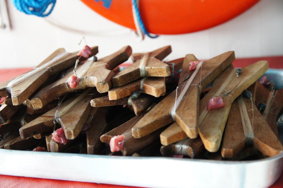 steigen in eines der anschaulichen Boote (blau/weiß natürlich) und los geht die
