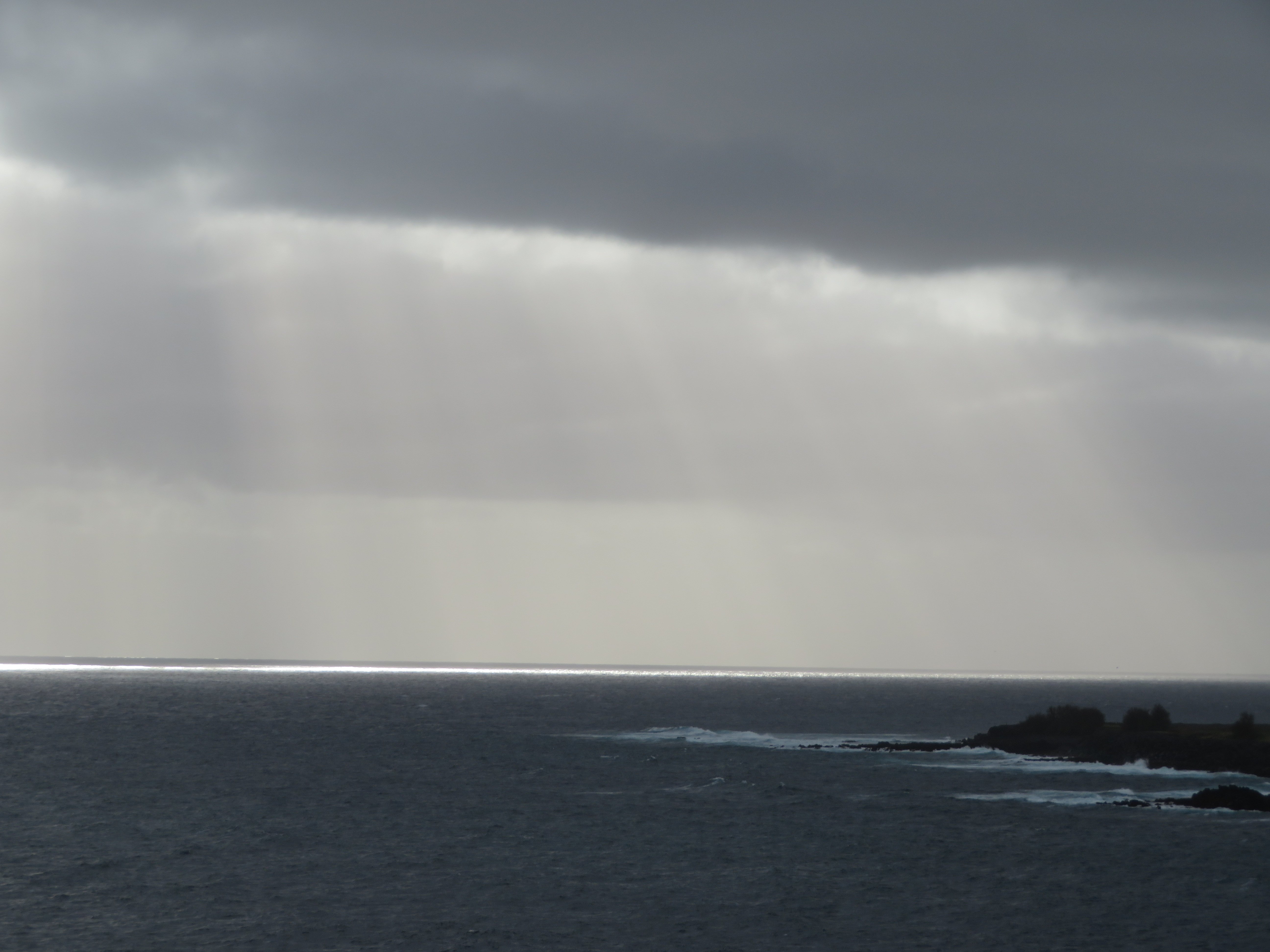 Das Einlaufen spüre ich, stehe aber trotzdem nicht auf. Es ist noch dunkel und nicht einmal 7 Uhr. Ich kann es langsam angehen lassen, denn mein Ausflug startet erst mittags. Als es hell wird mache ich mich bereit für die morgendlichen Rituale. Ich befreie meine Fensterbank von Kissen und Decken und was ich sehe gefällt mir nicht. Regen! Aber es gibt einen Lichtstreifen am Horizont.