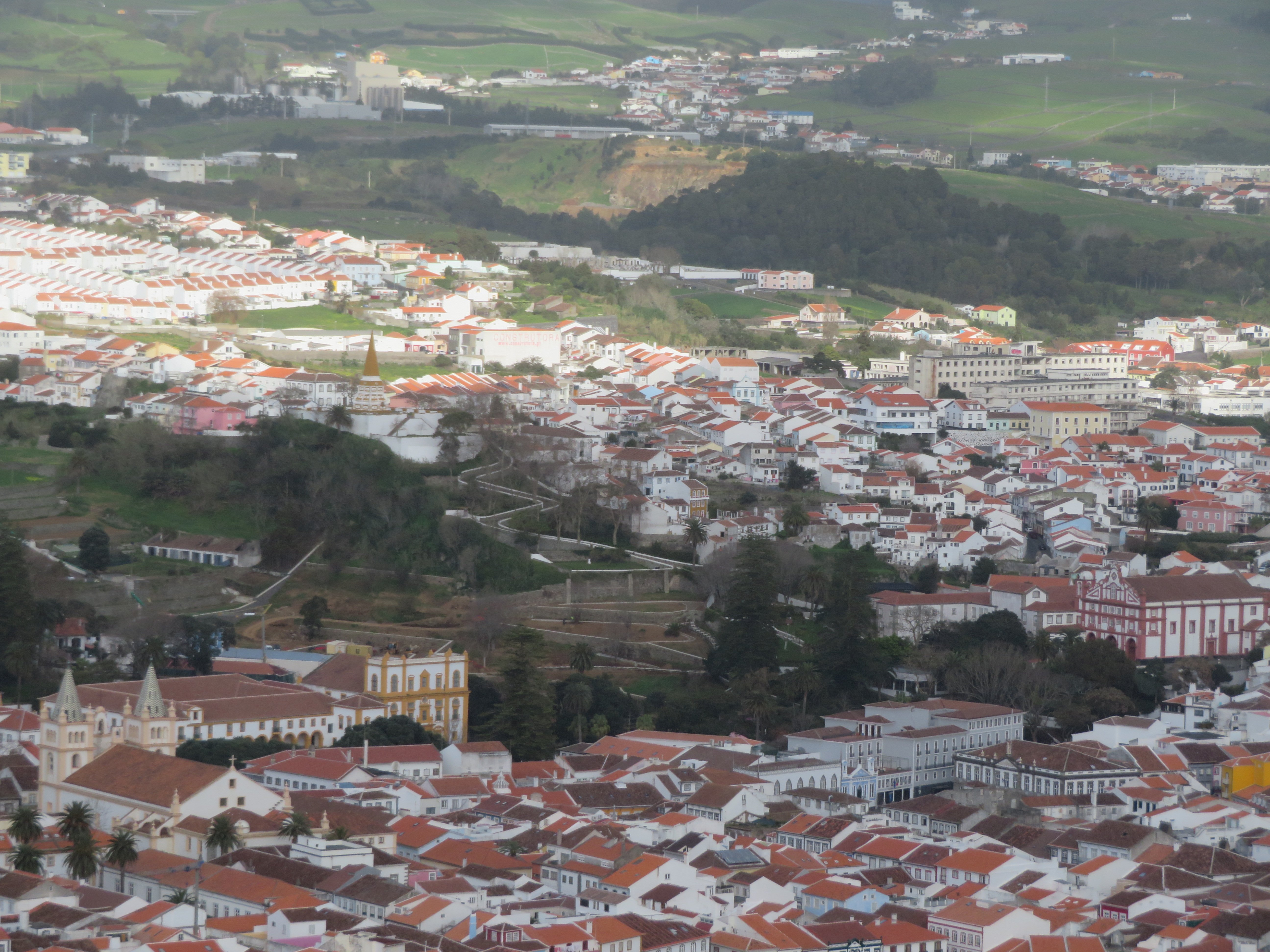 Ursprünglich nannten die Entdecker diese Insel Brasilien oder Ilha de Jesus Cristo (Insel Jesus Christus). Aus dieser Zeit stammt der Name Monte Brasil, ein Berg bei Angra do Heroísmo, der Inselhauptstadt. Dieser erloschene Vulkan ist als vorgelagerte Halbinsel mit der Stadt Angra do Heroísmo verbunden und er ist unser nächstes Ziel. Die Fahrt erfolgt über Serpentinen. Hinter jeder Kurve öffnet sich ein neues sehenswertes Panorama.