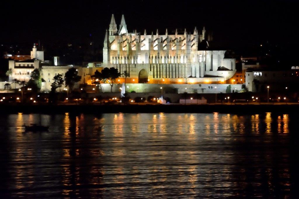 Nach dem Abendessen machten wir unseren gewohnten Verdauungsspaziergang. Ganz oben. Inzwischen war es dunkel und der Blick auf das nächtliche Palma mit der angestrahlten Kathedrale La Seu war phantastisch.