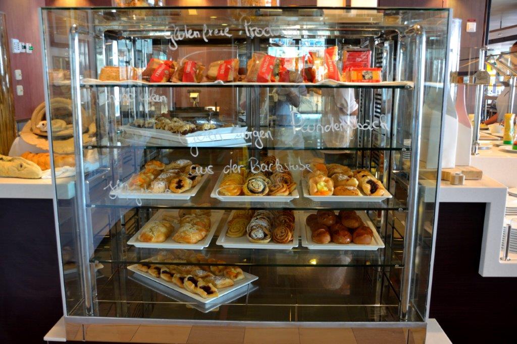 Platz satt, wie wir es später in den anderen Restaurants, auch in den Bedienrestaurants, sahen. Auch die Auswahl der Torten und des Kleingebäcks war größer, die Qualität besser. Schon wieder lag Mein Schiff vorne.