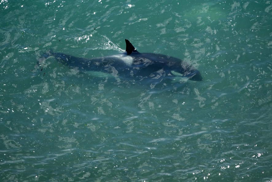 Dort ging es erst zu Klippen in der argentinischen Pampa und da gab es gleich ein tolles Schauspiel. So etwa 10 Wale (Orca) waren unter uns im Wasser auf der Jagd, das war der Hammer. Atemberaubend!