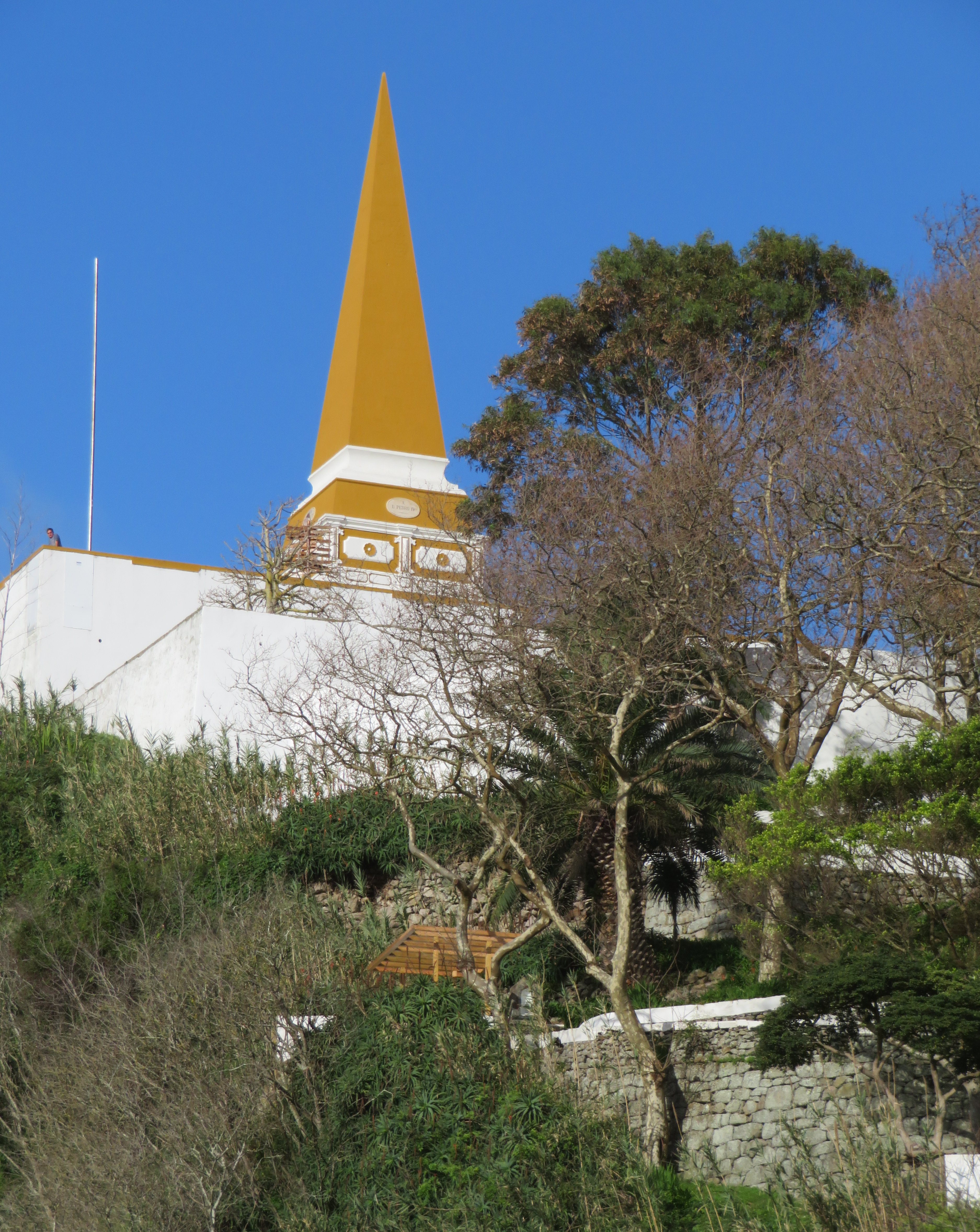 Im Hintergrund ist der Mitte des 20. Jahrhunderts zu Ehren des Königs Dom Pedro IV errichtete Obelisk Alto da Memoria. Ein Weg vom Garten führt direkt hinauf.
