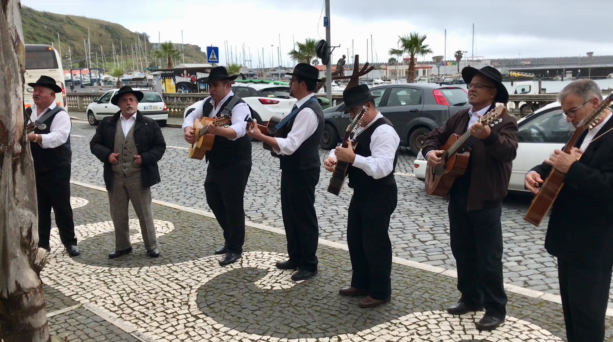 Orinoco Flow hat im vorigen Jahr den Ausflug am Vormittag gemacht. So hatte er nachmittags die Gelegenheit, sich in Praia ein wenig umzusehen. Dabei passierte ihm Folgendes: „Wir tranken am Sportboothafen einen Kaffee, als eine Gruppe von Musikern vor uns anhielt und uns mit einer sehr schönen Darbietung unterhielt. Die sieben Männer zogen durch die Stadt und sangen immer wieder an verschiedenen Plätzen. Wie wir erfuhren, soll das immer so sein wenn ein Schiff anlegt.“