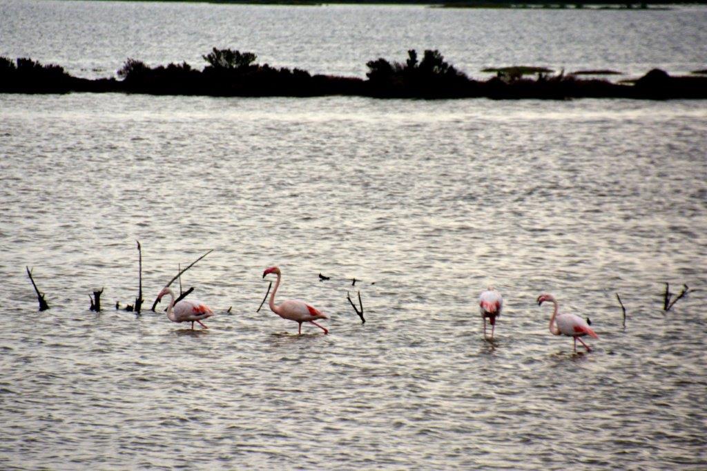 Zurück auf Mein Schiff – die Teller füllten sich und auch unsere Bäuche. Die richtige Voraussetzung zum Landgang. Da uns auch in den nächsten Häfen vorwiegend kulturträchtige Ziele erwarteten, hatten wir uns für Cagliari einen Mietwagenausflug in die nähere Umgebung vorgenommen. Also runter vom Schiff, mit dem Shuttle zum Hafenausgang und 10 Minuten zu Fuß zur Mietwagenstation. Nach wenigen Minuten saßen wir in einem Fiat-Panda und schnell verließen wir die Innenstadt von Cagliari. Das, was anfänglich links und rechts an uns vorbeizog, war nicht gerade attraktiv. Industrie, Zweckbauten, lange, ins Meer ragende Piers mit Ölleitungen. Auf einmal ging es nicht weiter auf der von uns ausgesuchten Straße. Das vor vier Tagen Südsardinien heimgesuchte Unwetter sorgte dafür, dass eine Brücke von den herantobenden Fluten weggerissen wurde. Ergebnis: Umleitung über teilweise sehr enge Nebenstraßen. Aber ein Gutes hatte die Umleitung: Wir sahen zum ersten Mal in einer Lagune herumstelzende Flamingos. Einfach nur schööööööööön …