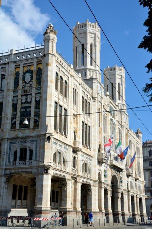 strebten wir nach oben. Unser Ziel war das von einer mittelalterlichen Mauer umgürtete Castello-Viertel mit der auf dem höchsten Punkt thronenden Kathedrale. Zunächst war´s ganz gemütlich … Durch verschiedene Nebenstraßen und dann durch eine Haupteinkaufsstraße bewegten wir uns im Schatten und sahen auf einmal direkt vor uns die Stadtmauer. Uiiii – dort mussten wir hoch … Na, dann man los … nicht endende Treppen. Vorbei an alten, hohen Häusern mit dem Charme des nicht abänderbaren Verfalls, allerdings auch vielen attraktiven Lichtblicken gab es wiederholt die Chance, Blicke über Teile der Stadt zu werfen. Immerhin waren wir schon auf einer Höhe mit der Kuppel der imposanten Barockkirche Chiesa Sant´ Anna Cagliari. Aber mit längerem Ausruhen war nichts – denn bis zum „Alle Mann an Bord“ um 16.30 Uhr wollten wir noch einige interessante Stellen in Cagliari besuchen, den Panda abgeben und zurück zum Schiff eilen. Also weiter – weiter über steile Gassen und Treppen bis wir die Via Università erreichten. Dort musste es interessant sein – wir sahen nicht nur eine Menschentraube um ein Mein-Schiff-Schild … Unsere Mitpassagiere wurden von den Reiseführern informiert, dass sie vor einem Teil einer der ältesten italienischen Universitäten standen. Und zwar vor der Universitätsbibliothek. Gut – die Richtung stimmte und wir kamen am Ende der Straße auf einen riesigen Platz.