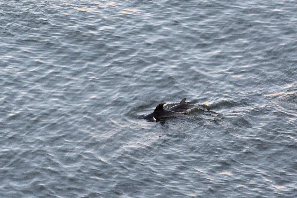 Sylvester, Tweety, Tyz und Bugs Bunny beobachteten, wie unser Schiff zum Auslaufen bereit gemacht wurde. Plötzlich erkannten wir Bewegung im Wasser. Eine Delphinschule führte ihre Kunststücke vor!