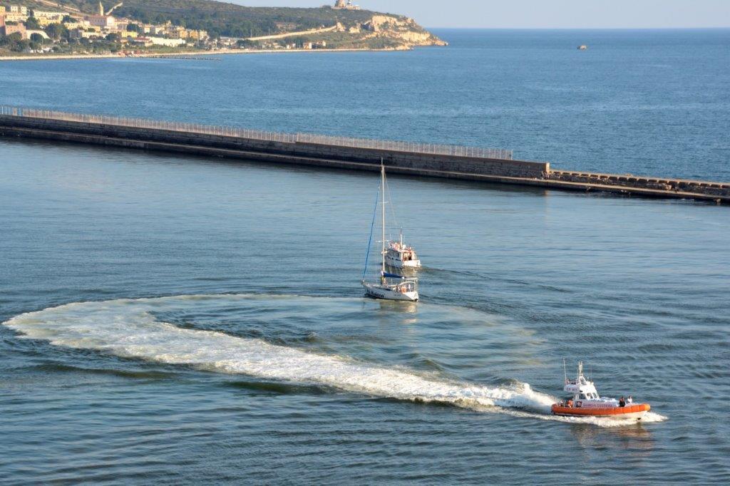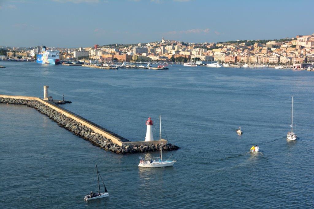 Langsam löste sich Mein Schiff 3 vom Kai, schob sich rückwärts in den geräumigen Hafen und dann … dann tauchten nochmals Delphine auf! Sie erfreuten uns mit ihren Tandemsprüngen und erleichterten den Abschied von Sardinien. Himmel und Sonne zeigten sich von der besten Seite, als wir langsam den Hafen verließen.